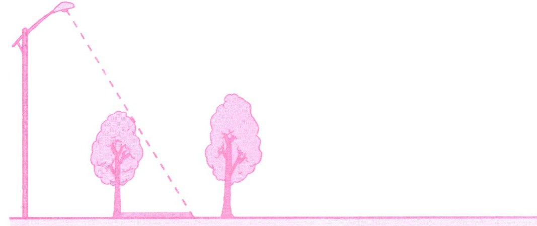 (2)图中已画出了小树在路灯下的影子,你能画出大树在路灯下的影子吗?试一试。