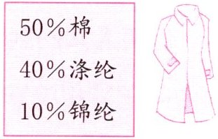 小刚的妈妈有一件大衣,内侧有一张面料标签(如图),如果锦纶重200g,你知道其他两种成分各重多少克吗?
