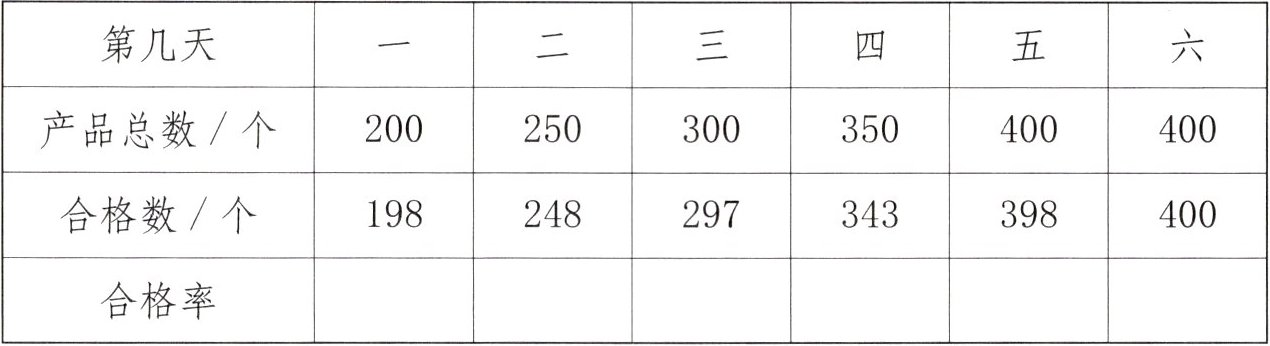 合格率表格从左到右依次填写:$99\%$,$99.2\%$,$99\%$,$98\%$,$99.5\%$,$100\%$。
