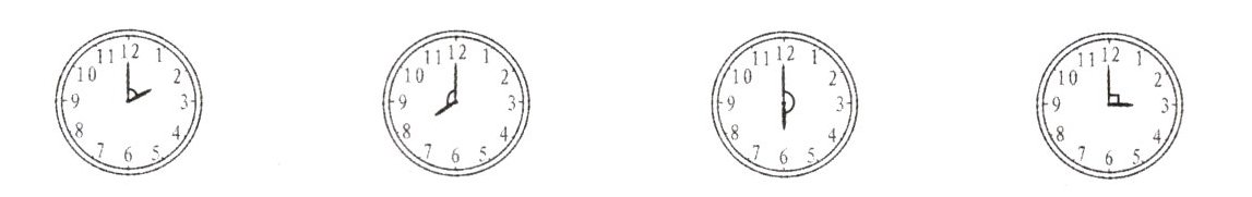 3. 每个钟面上时针和分针组成的角分别是什么角? 填一填。