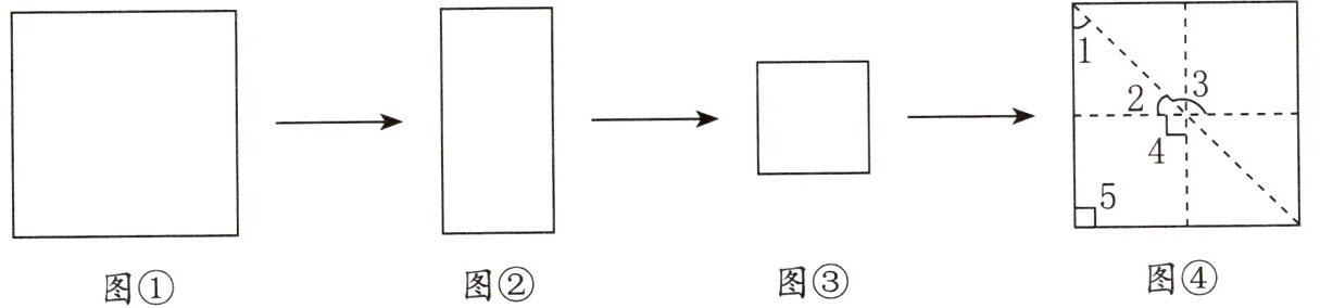 把一张正方形纸对折两次,打开后再沿一条对角线对折,再打开(如下图)。