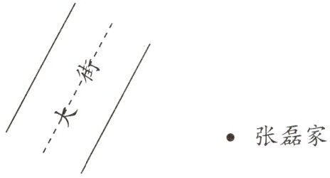 8. 张磊家新建了一座楼房,要从大街边上把自来水管接到家。怎样接比较节省?在图中画出来。