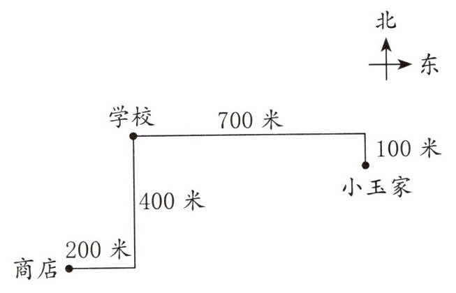 (1)小玉从家向( )走( )米,再向( )走( )米就到学校了。