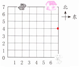 (2)两只兔子同时向家中跑去(两只兔子跑的速度是一样的),灰兔回到家时,白兔大致在什么位置?在图上用点标出来。