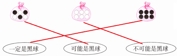 2. 闭着眼睛在口袋里任意摸出一个球,有几种可能?用线连一连。