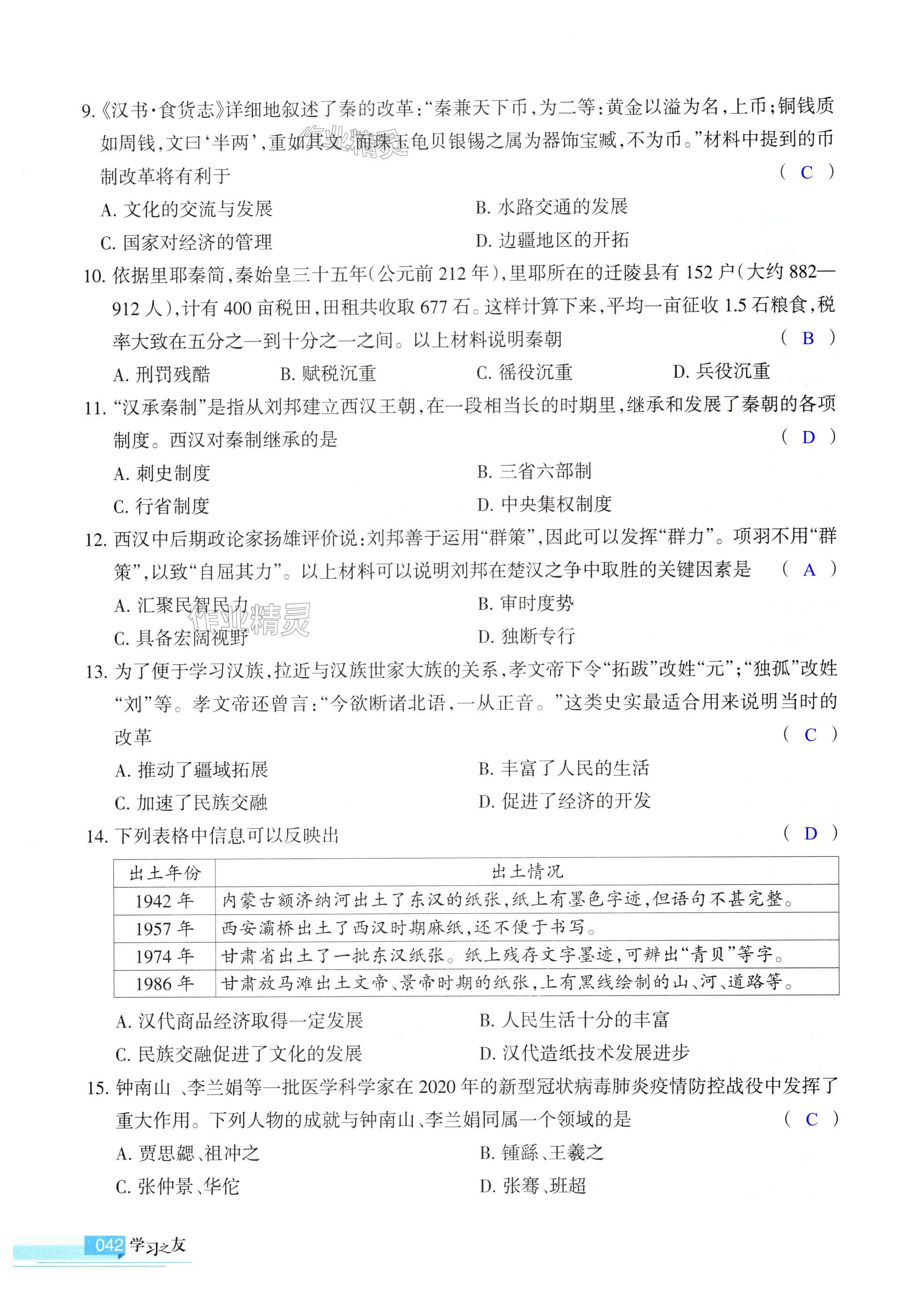 注:目前有些书本章节名称可能整理的还不是很完善,但都是按照顺序排列的,请同学们按照顺序仔细查找。练习册 2024年学习之友七年级历史上册人教版 答案主要是用来给同学们做完题方便对答案用的,请勿直接抄袭。