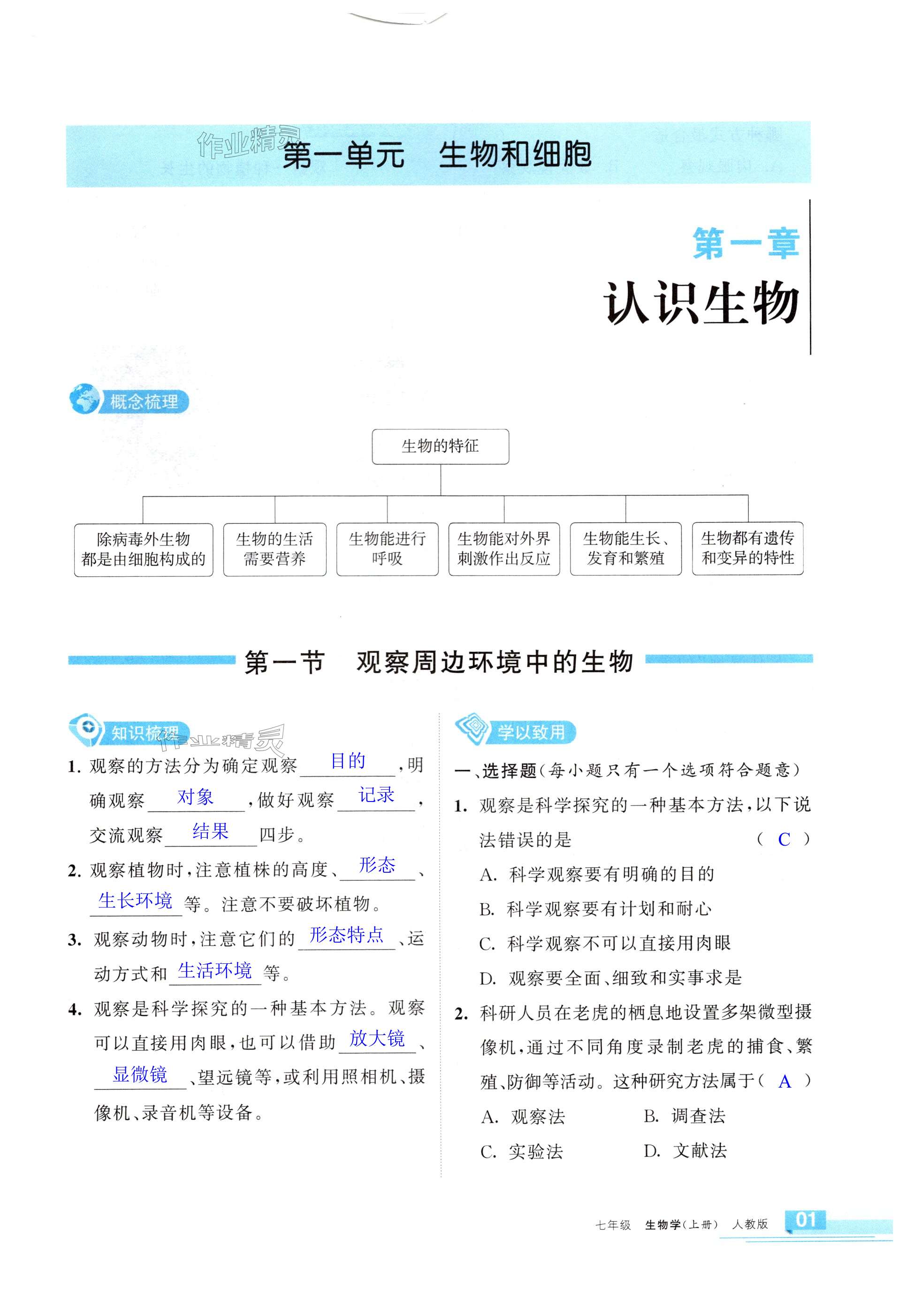 注:目前有些书本章节名称可能整理的还不是很完善,但都是按照顺序排列的,请同学们按照顺序仔细查找。练习册 2024年学习之友七年级生物上册人教版 答案主要是用来给同学们做完题方便对答案用的,请勿直接抄袭。