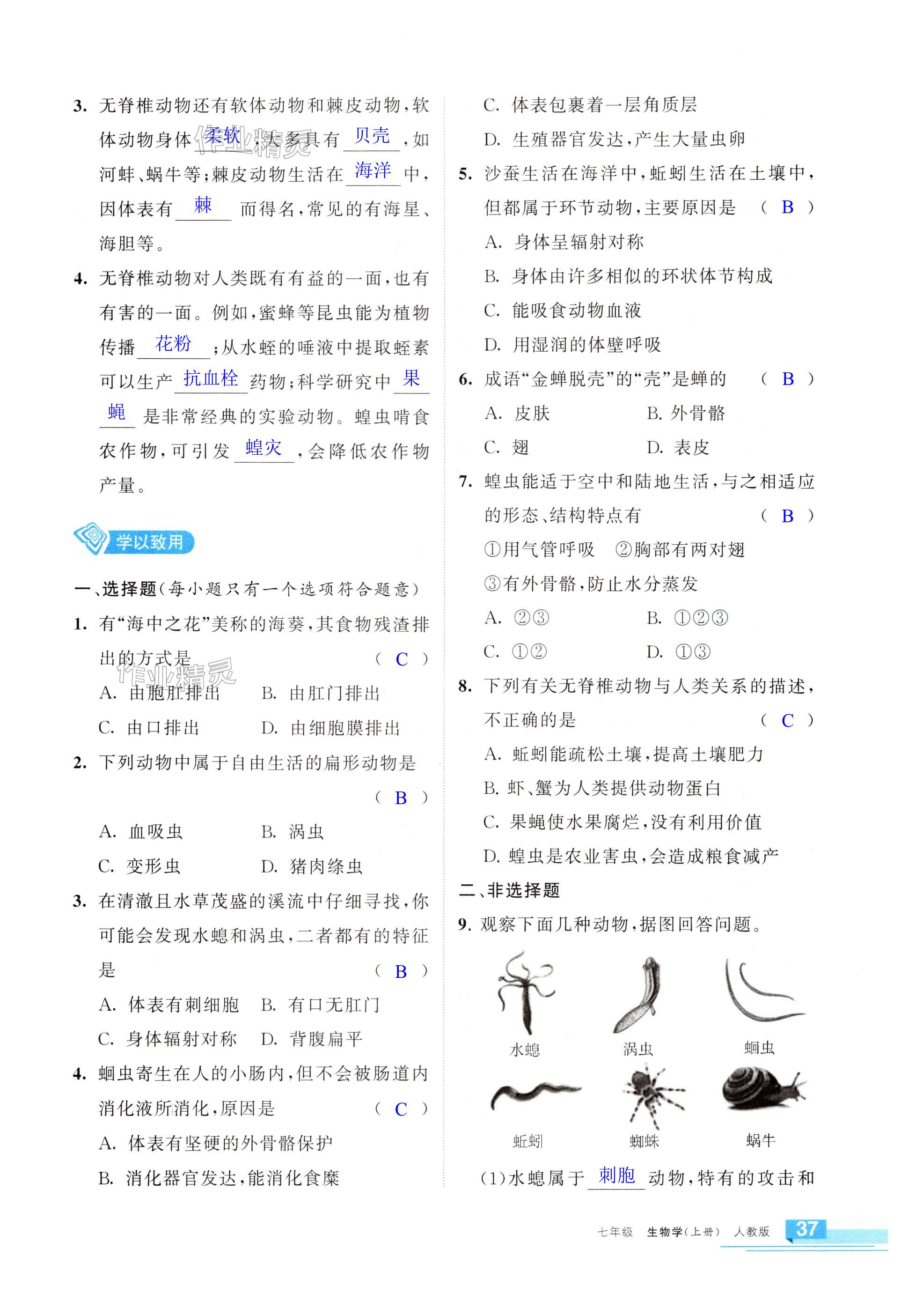 注:目前有些书本章节名称可能整理的还不是很完善,但都是按照顺序排列的,请同学们按照顺序仔细查找。练习册 2024年学习之友七年级生物上册人教版 答案主要是用来给同学们做完题方便对答案用的,请勿直接抄袭。