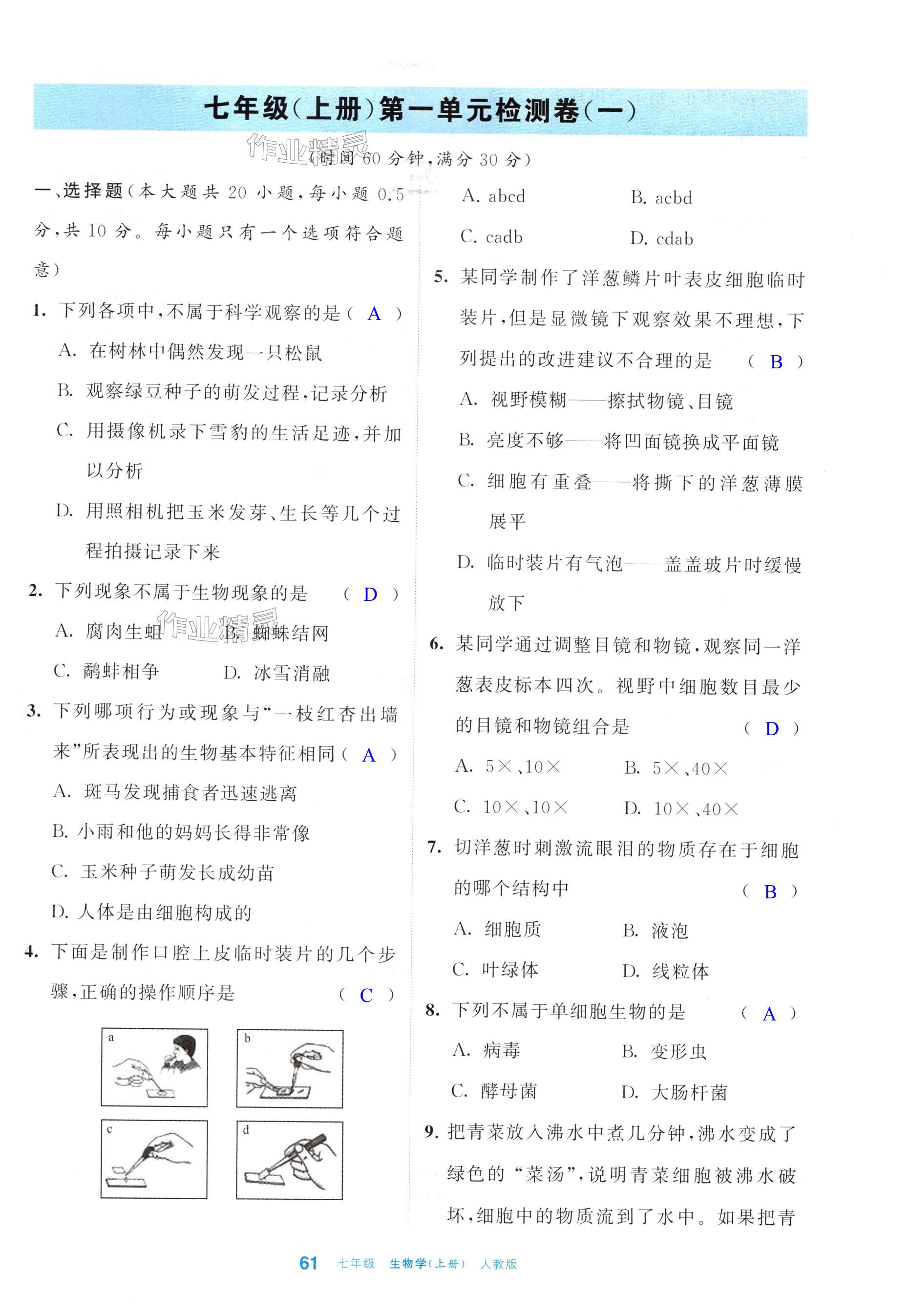 注:目前有些书本章节名称可能整理的还不是很完善,但都是按照顺序排列的,请同学们按照顺序仔细查找。练习册 2024年学习之友七年级生物上册人教版 答案主要是用来给同学们做完题方便对答案用的,请勿直接抄袭。