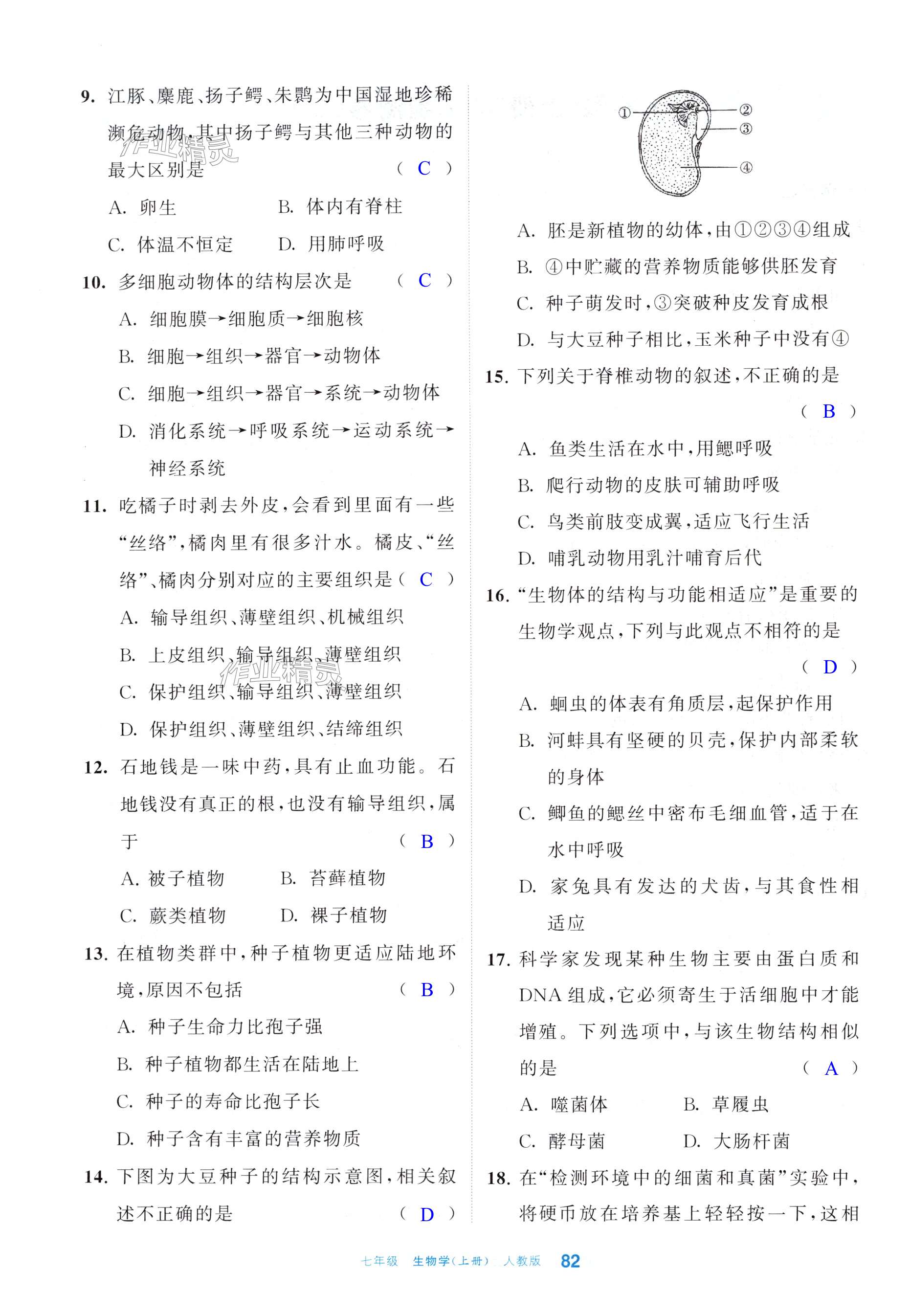 注:目前有些书本章节名称可能整理的还不是很完善,但都是按照顺序排列的,请同学们按照顺序仔细查找。练习册 2024年学习之友七年级生物上册人教版 答案主要是用来给同学们做完题方便对答案用的,请勿直接抄袭。