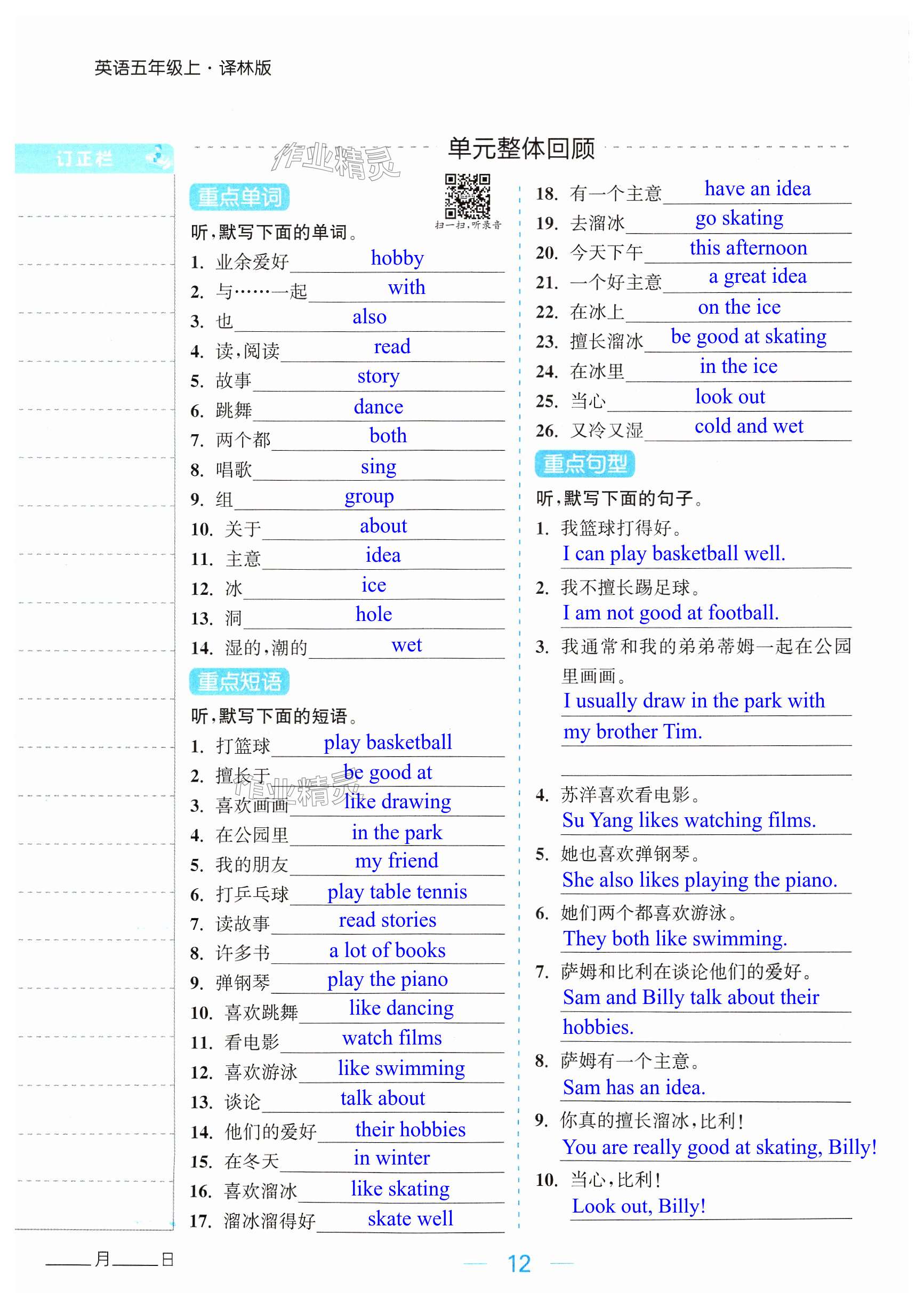 注:目前有些书本章节名称可能整理的还不是很完善,但都是按照顺序排列的,请同学们按照顺序仔细查找。练习册 2024年金色课堂课时作业本五年级英语上册译林版提优版 答案主要是用来给同学们做完题方便对答案用的,请勿直接抄袭。
