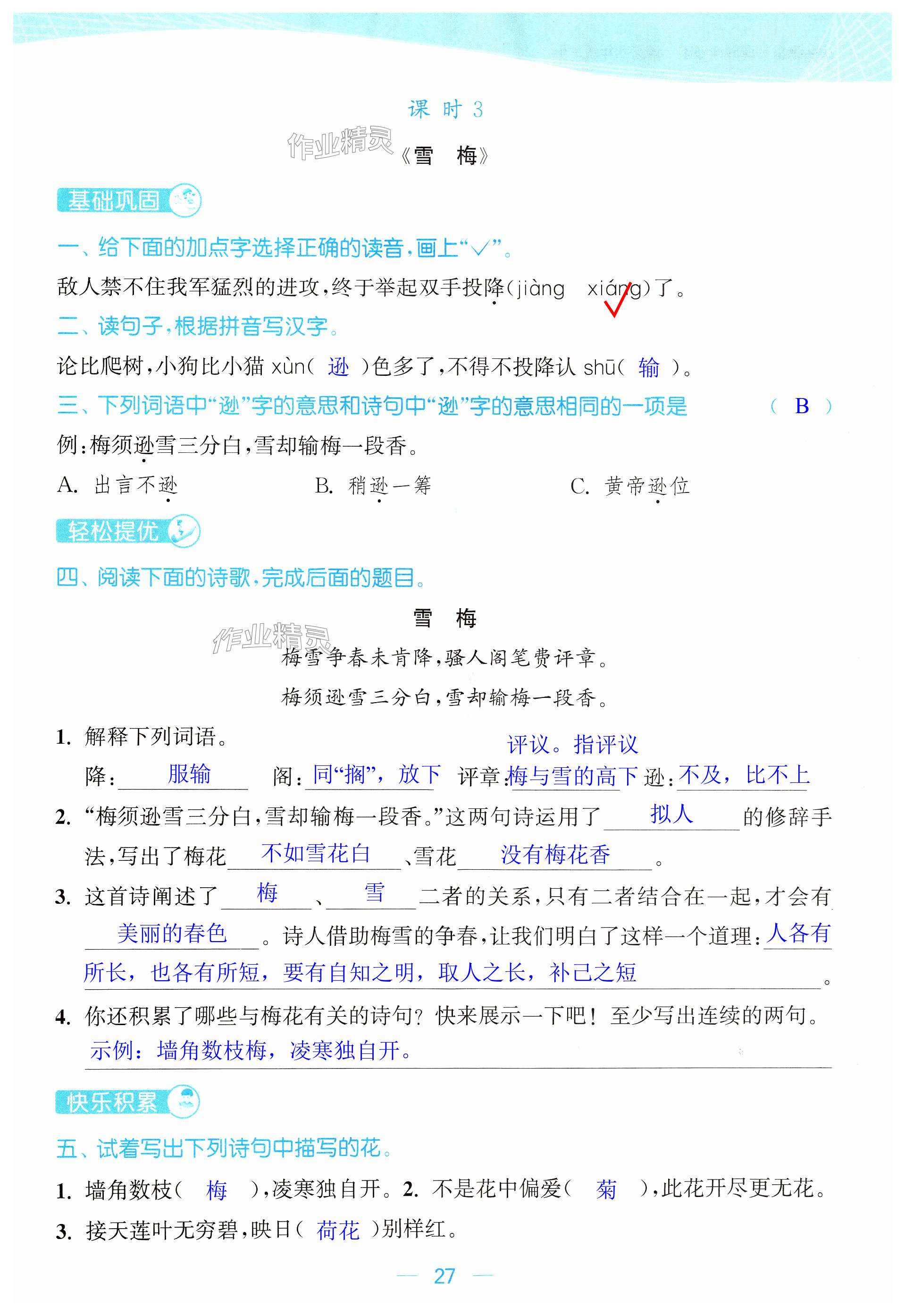 注:目前有些书本章节名称可能整理的还不是很完善,但都是按照顺序排列的,请同学们按照顺序仔细查找。练习册 2024年金色课堂课时作业本四年级语文上册提优版 答案主要是用来给同学们做完题方便对答案用的,请勿直接抄袭。