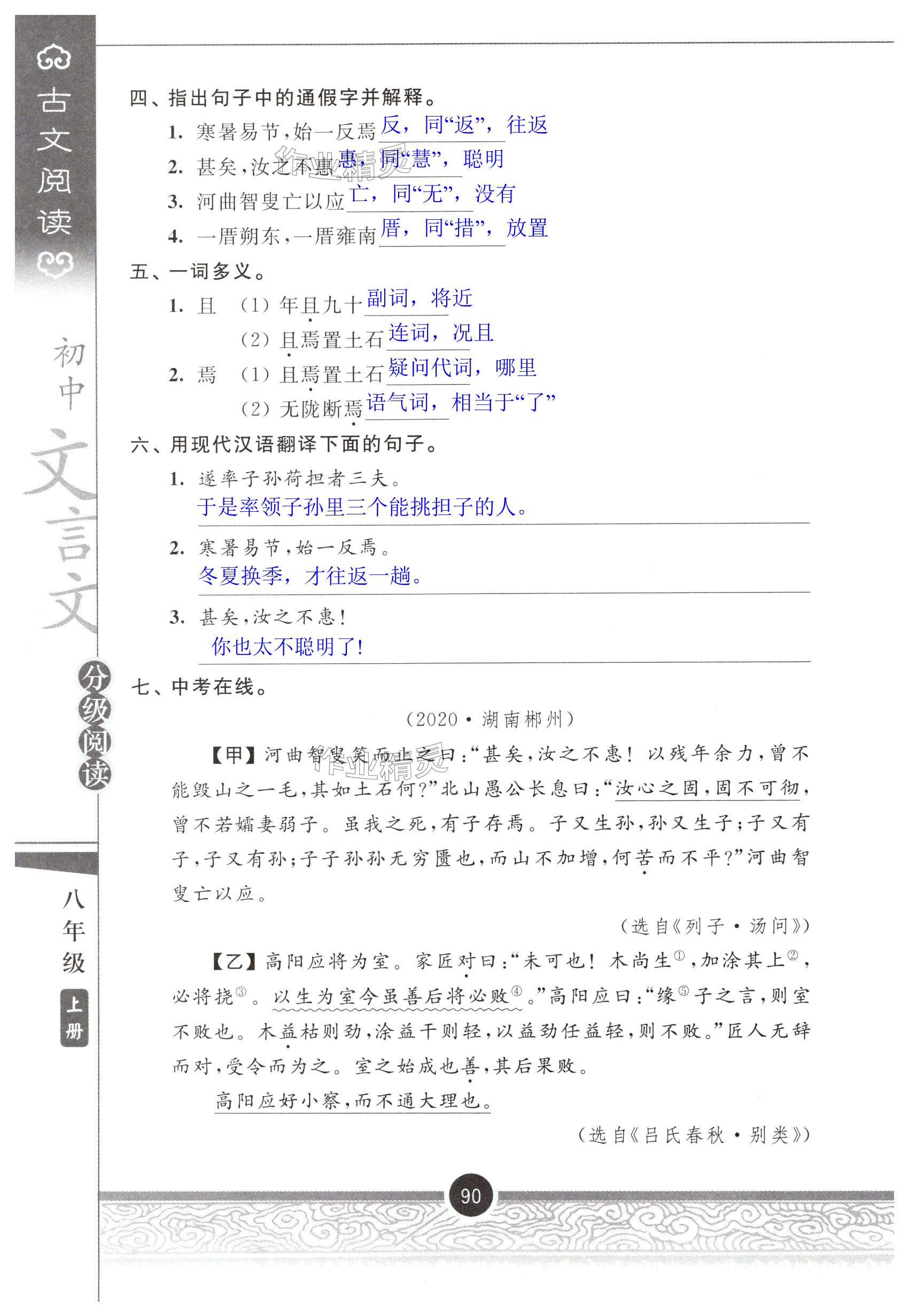注:目前有些书本章节名称可能整理的还不是很完善,但都是按照顺序排列的,请同学们按照顺序仔细查找。练习册 2024年初中文言文分级阅读八年级上册人教版 答案主要是用来给同学们做完题方便对答案用的,请勿直接抄袭。