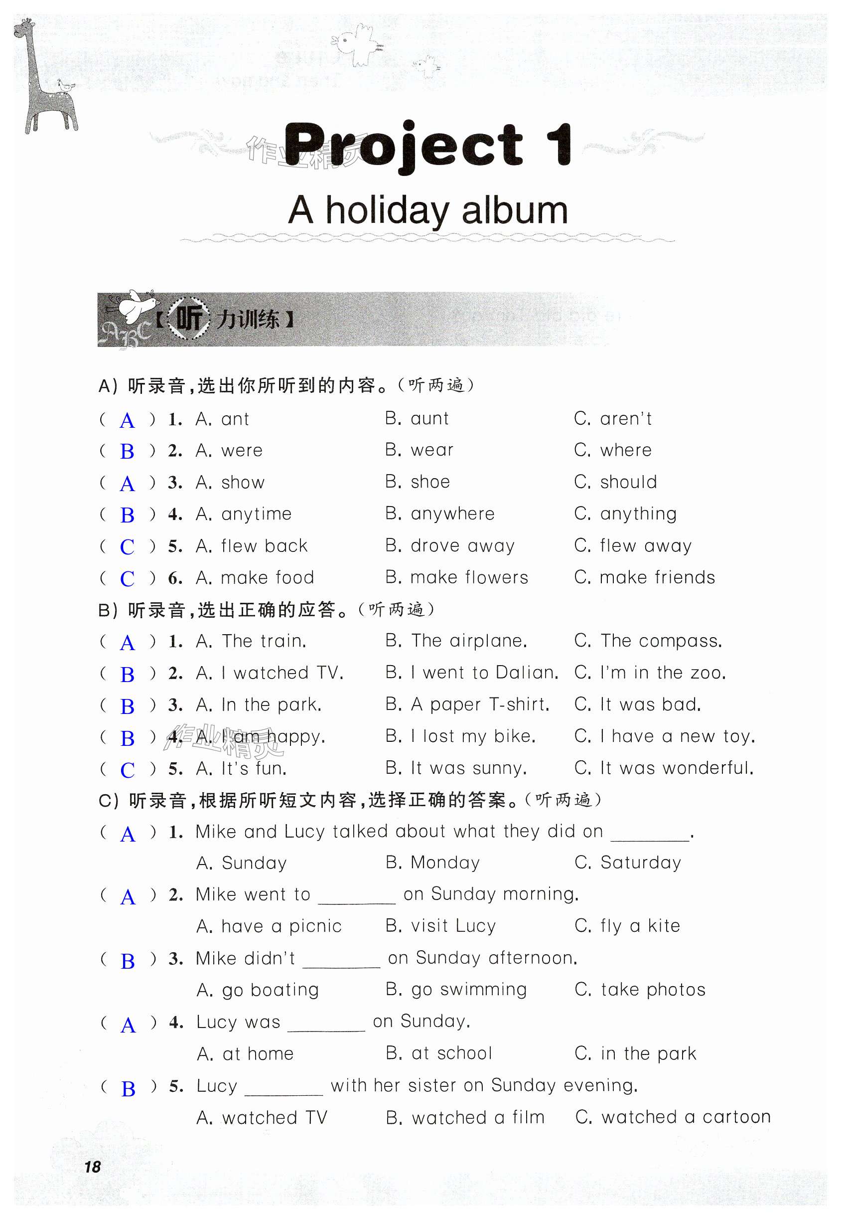 注:目前有些书本章节名称可能整理的还不是很完善,但都是按照顺序排列的,请同学们按照顺序仔细查找。练习册 2024年听读教室小学英语听读六年级英语上册译林版 答案主要是用来给同学们做完题方便对答案用的,请勿直接抄袭。