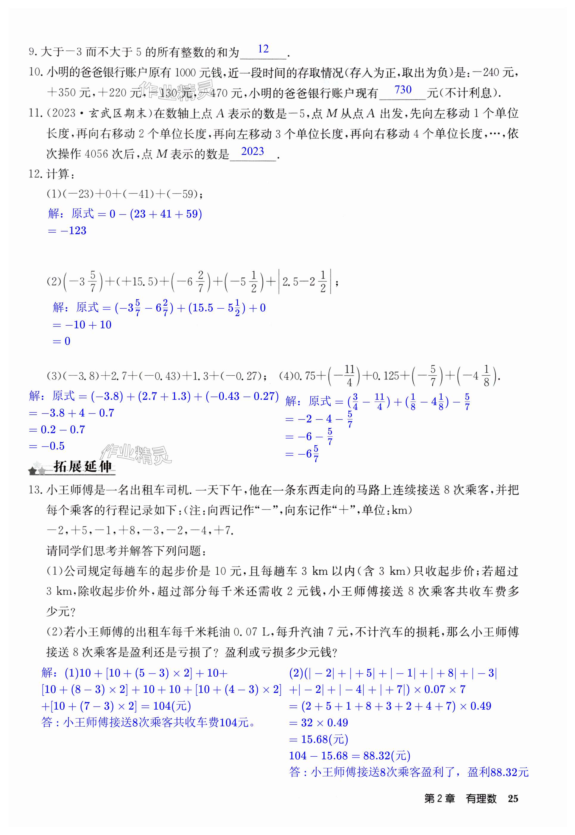 2024年启东中学作业本七年级数学上册苏科版宿迁专版