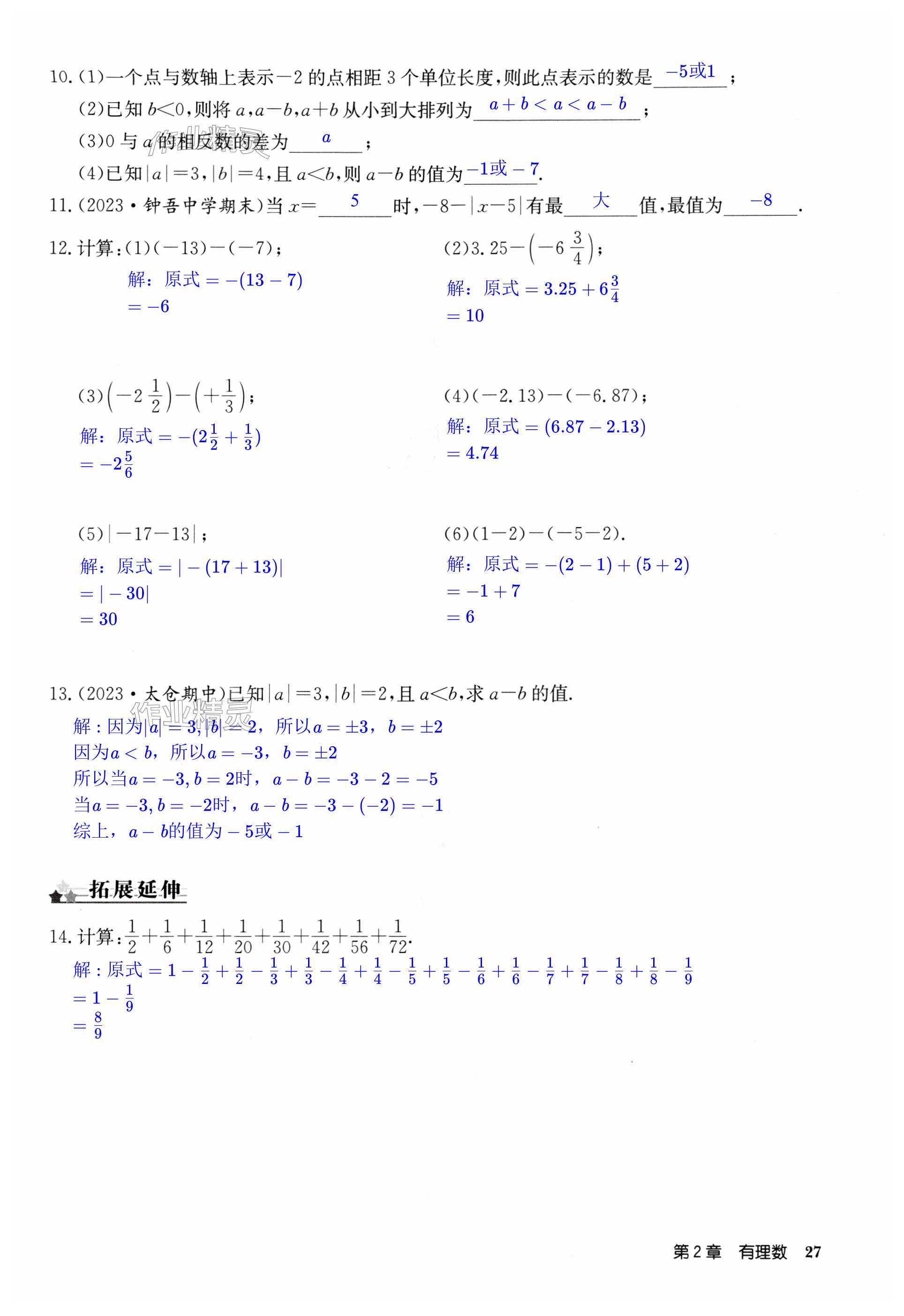 注:目前有些书本章节名称可能整理的还不是很完善,但都是按照顺序排列的,请同学们按照顺序仔细查找。练习册 2024年启东中学作业本七年级数学上册苏科版宿迁专版 答案主要是用来给同学们做完题方便对答案用的,请勿直接抄袭。