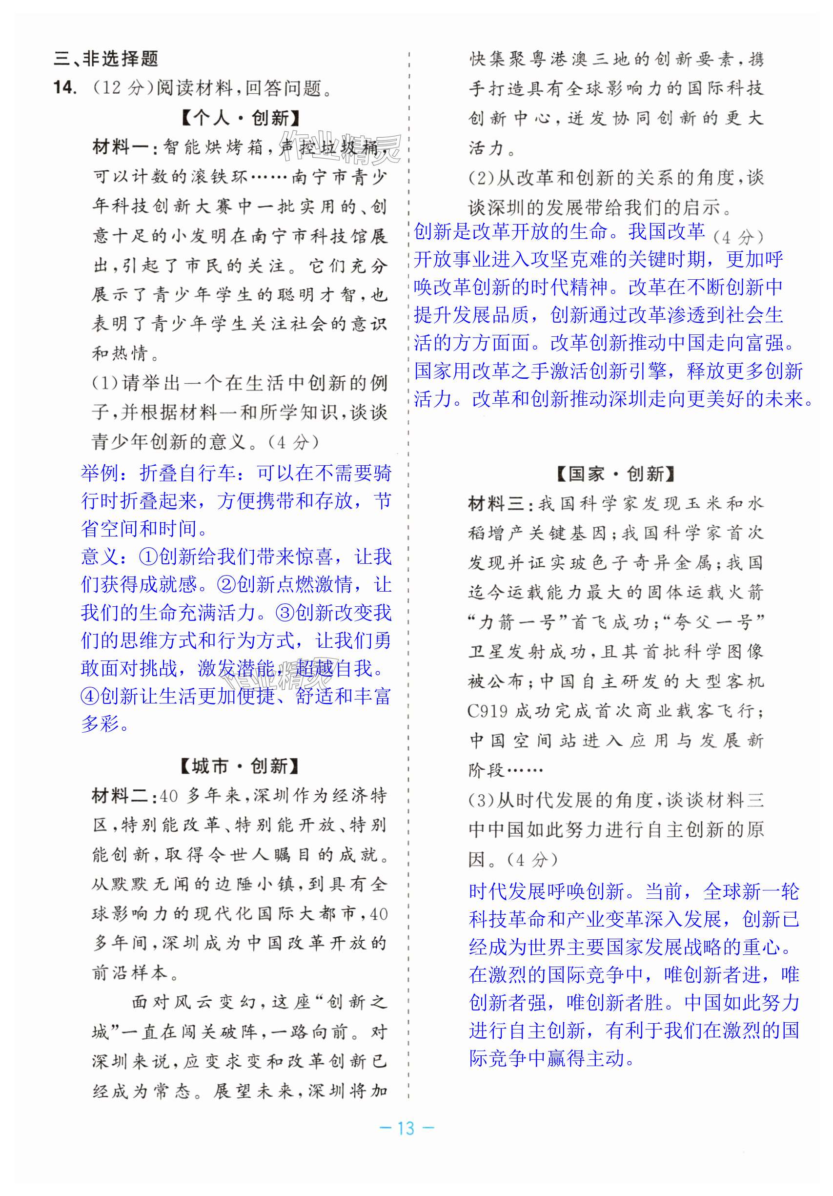 注:目前有些书本章节名称可能整理的还不是很完善,但都是按照顺序排列的,请同学们按照顺序仔细查找。练习册 2024年精彩练习就练这一本九年级道德与法治全一册人教版评议教辅 答案主要是用来给同学们做完题方便对答案用的,请勿直接抄袭。