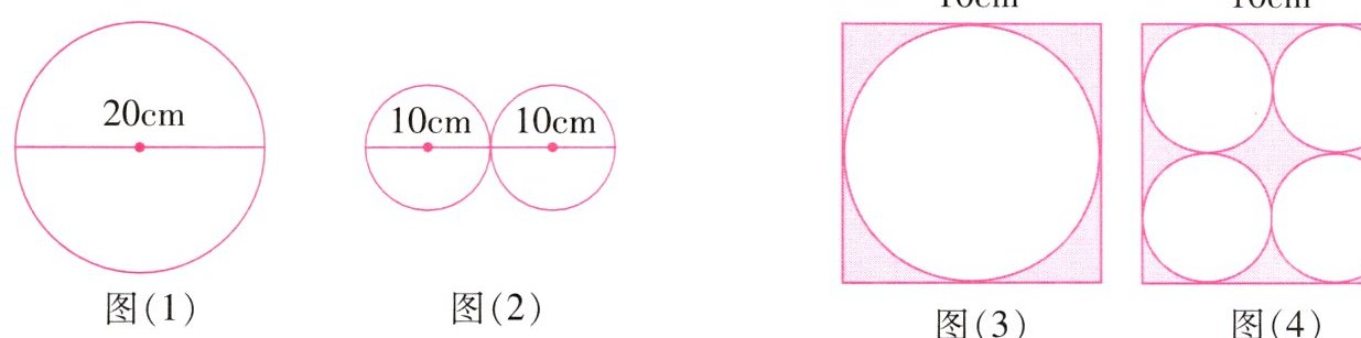 图(1)的周长( )图(2)的周长。 图(3)阴影的面积( )图(4)阴影的面积。
