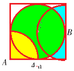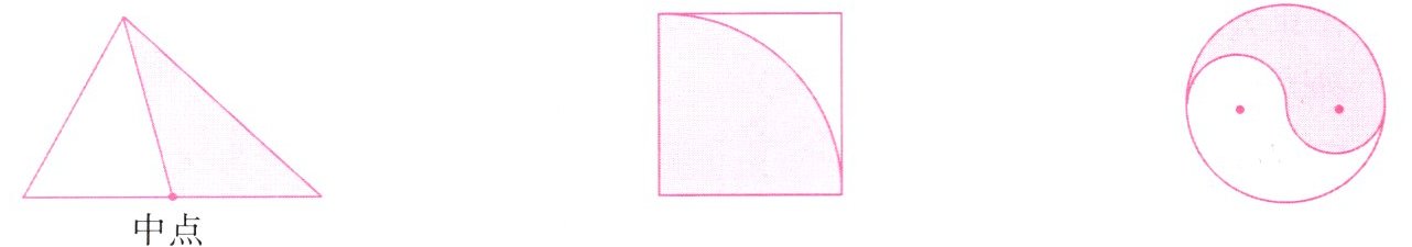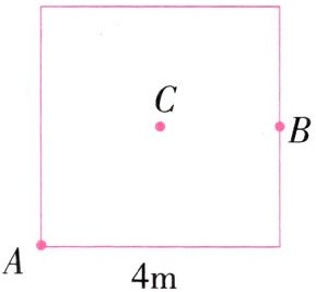 5. 有一块边长为4m的正方形草地,分别在A,B(边的中点),C(草地的中心)三点用一根长2m的绳子拴羊。请画出羊在这三点分别能吃到草的部分,并涂上阴影。