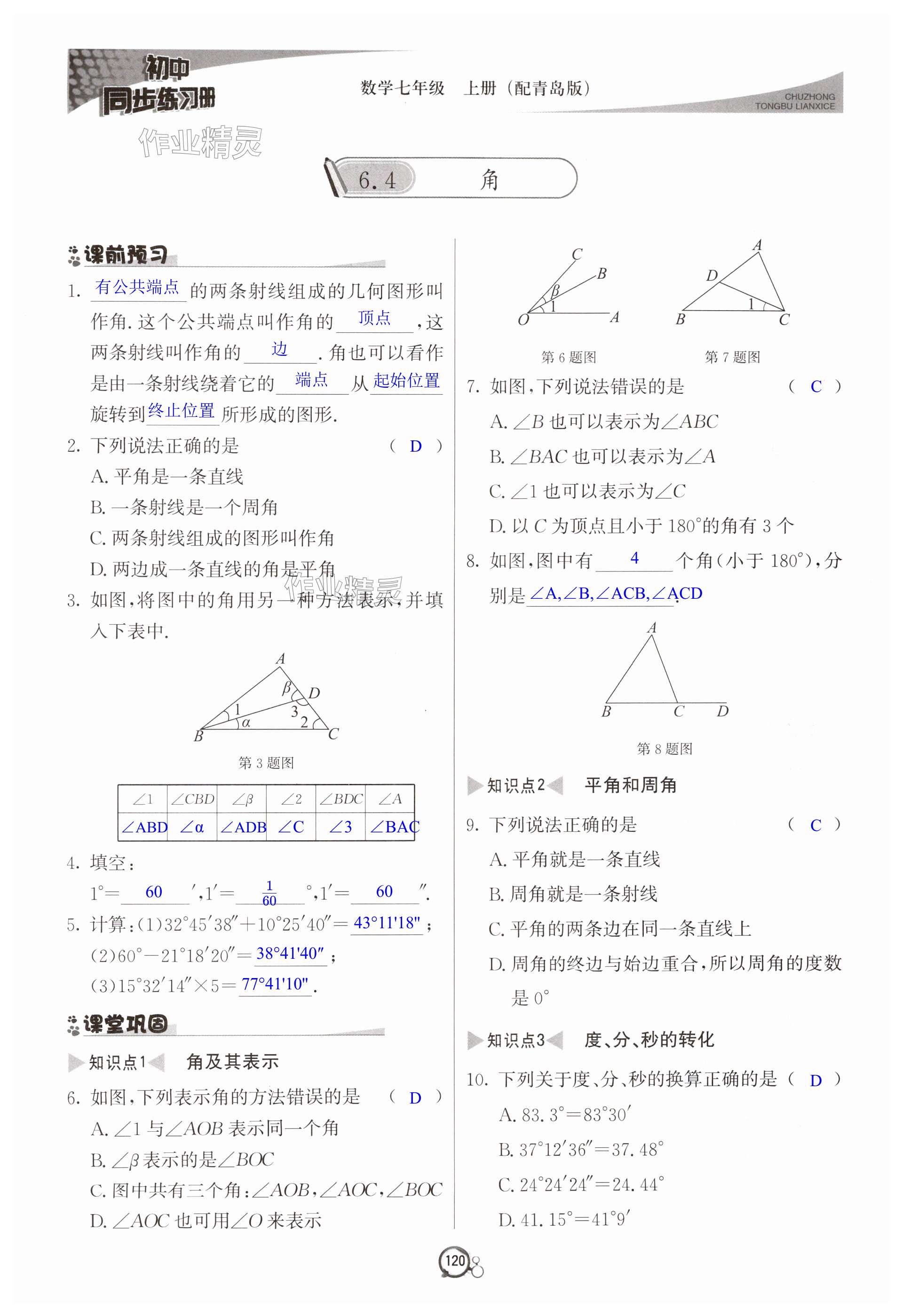 注:目前有些书本章节名称可能整理的还不是很完善,但都是按照顺序排列的,请同学们按照顺序仔细查找。练习册 2024年初中同步练习册七年级数学上册青岛版北京教育出版社 答案主要是用来给同学们做完题方便对答案用的,请勿直接抄袭。