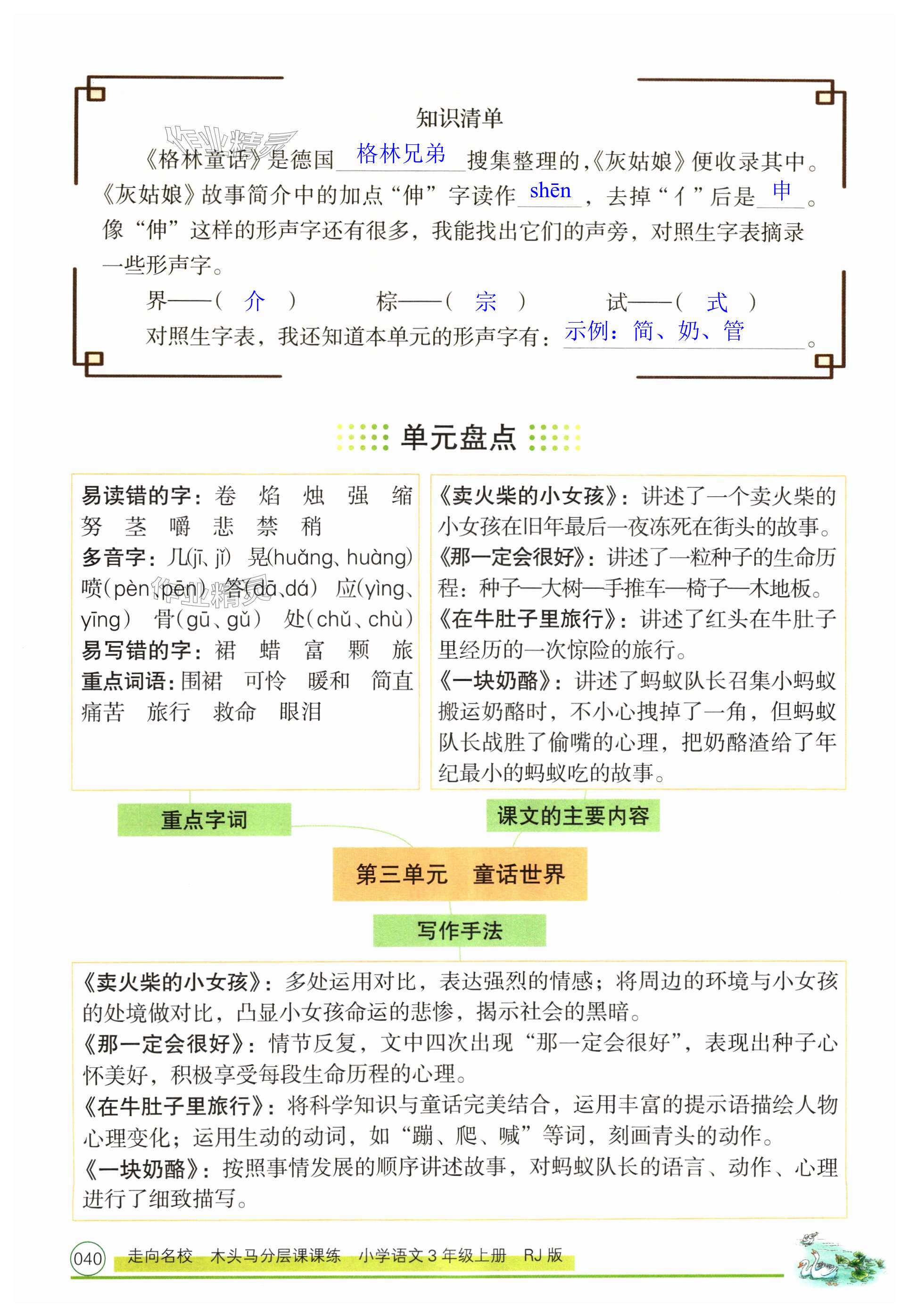 注:目前有些书本章节名称可能整理的还不是很完善,但都是按照顺序排列的,请同学们按照顺序仔细查找。练习册 2024年木头马分层课课练三年级语文上册人教版浙江专版 答案主要是用来给同学们做完题方便对答案用的,请勿直接抄袭。