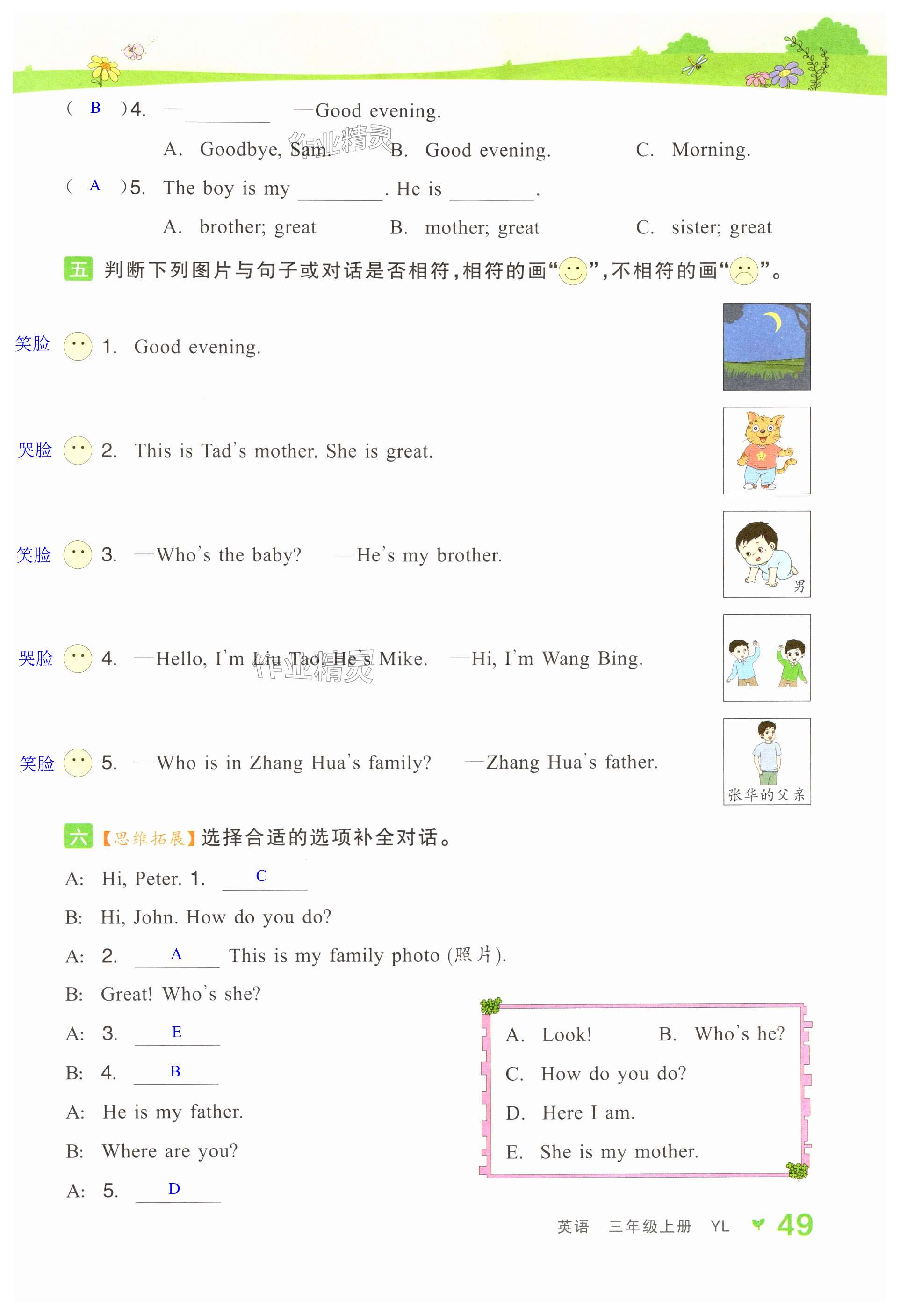 注:目前有些书本章节名称可能整理的还不是很完善,但都是按照顺序排列的,请同学们按照顺序仔细查找。练习册 2024年全品学练考三年级英语上册译林版 答案主要是用来给同学们做完题方便对答案用的,请勿直接抄袭。