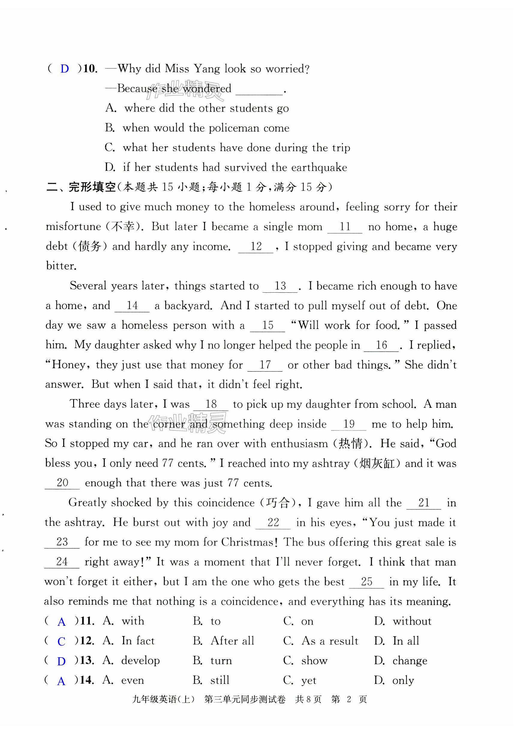 注:目前有些书本章节名称可能整理的还不是很完善,但都是按照顺序排列的,请同学们按照顺序仔细查找。练习册 2024年伴你学单元达标测试卷九年级英语上册译林版 答案主要是用来给同学们做完题方便对答案用的,请勿直接抄袭。