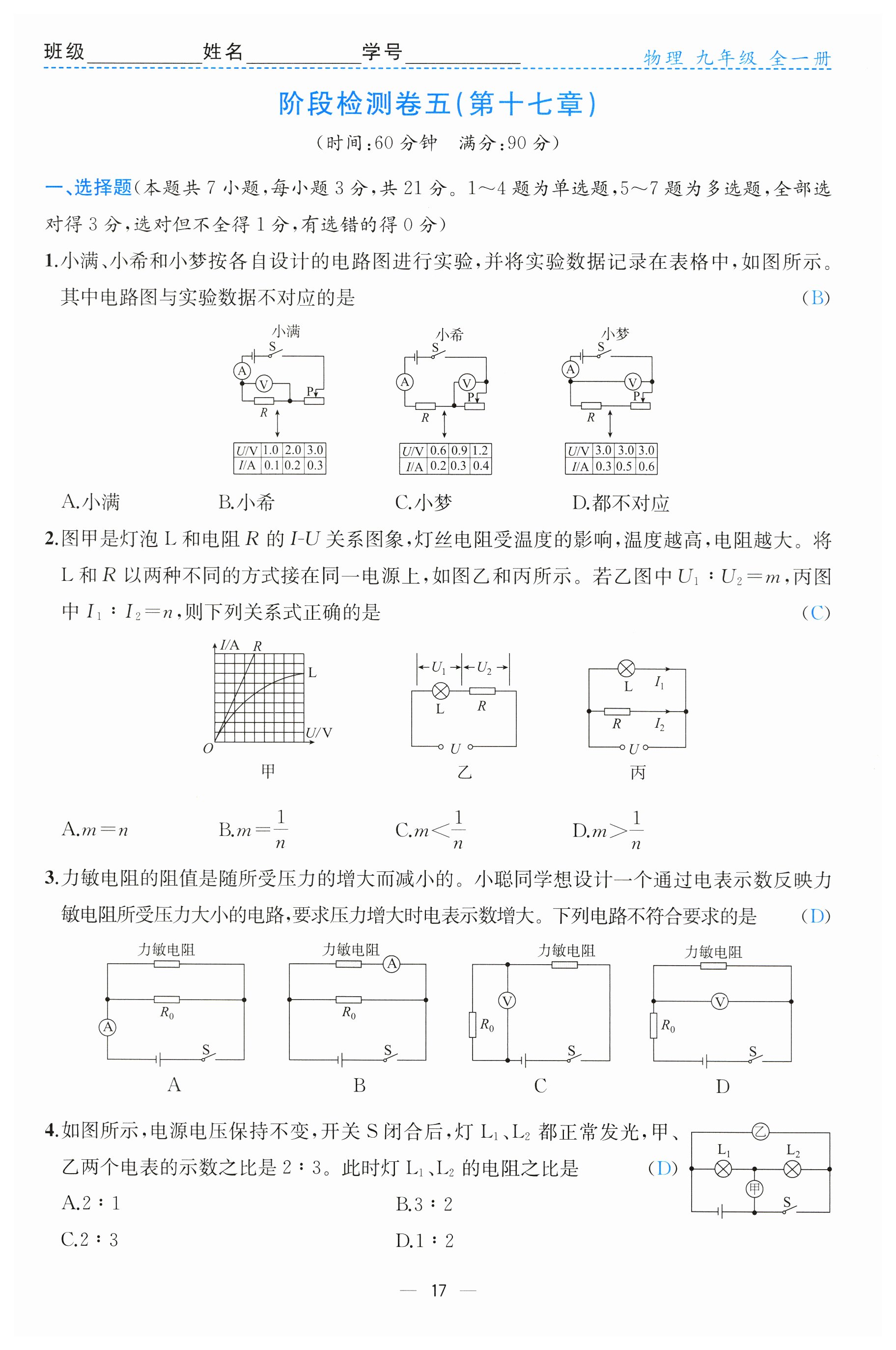 注:目前有些书本章节名称可能整理的还不是很完善,但都是按照顺序排列的,请同学们按照顺序仔细查找。练习册 2024年人教金学典同步解析与测评九年级物理全一册人教版云南专版 答案主要是用来给同学们做完题方便对答案用的,请勿直接抄袭。