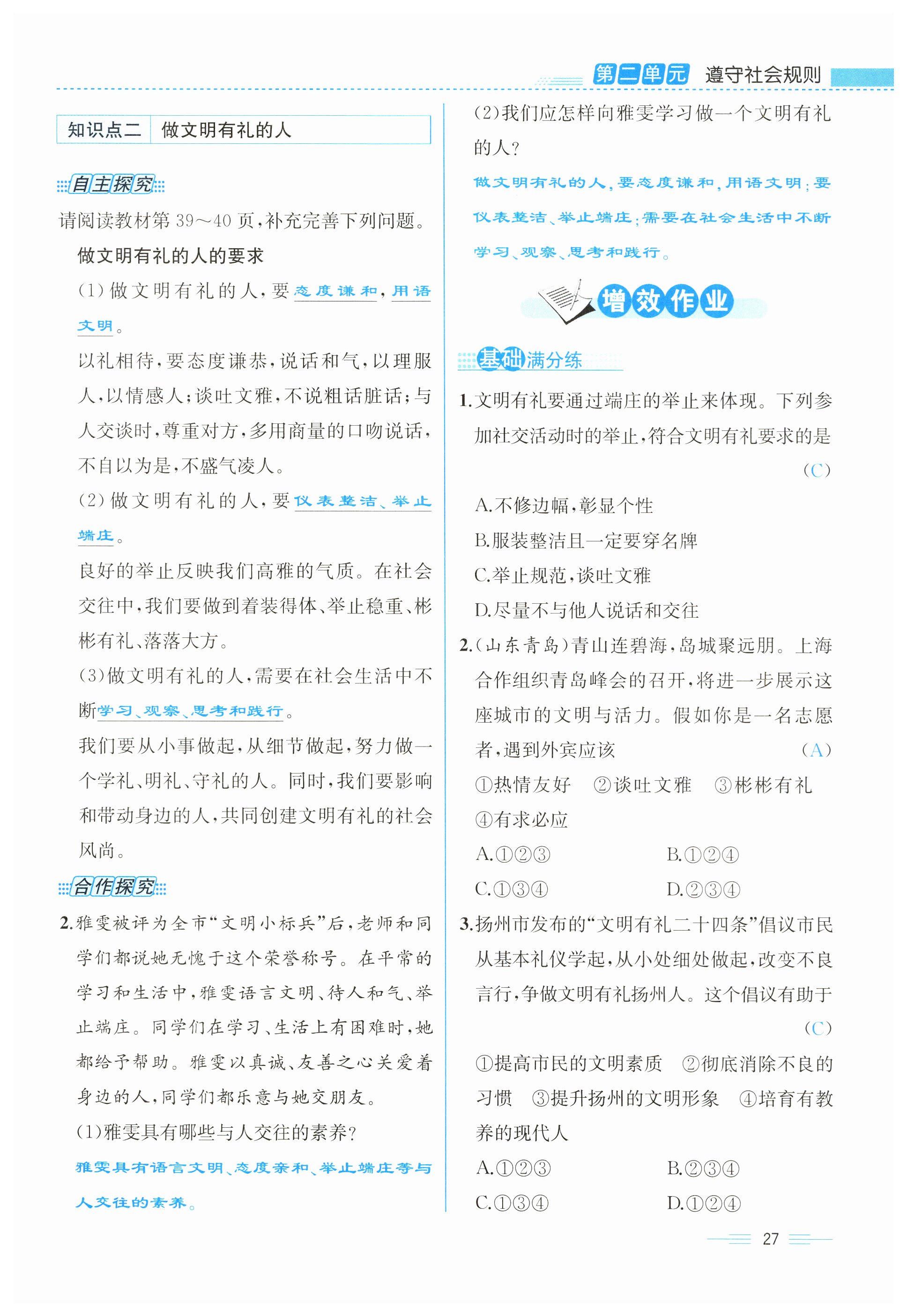 2024年人教金学典同步解析与测评八年级道德与法治上册人教版云南专版