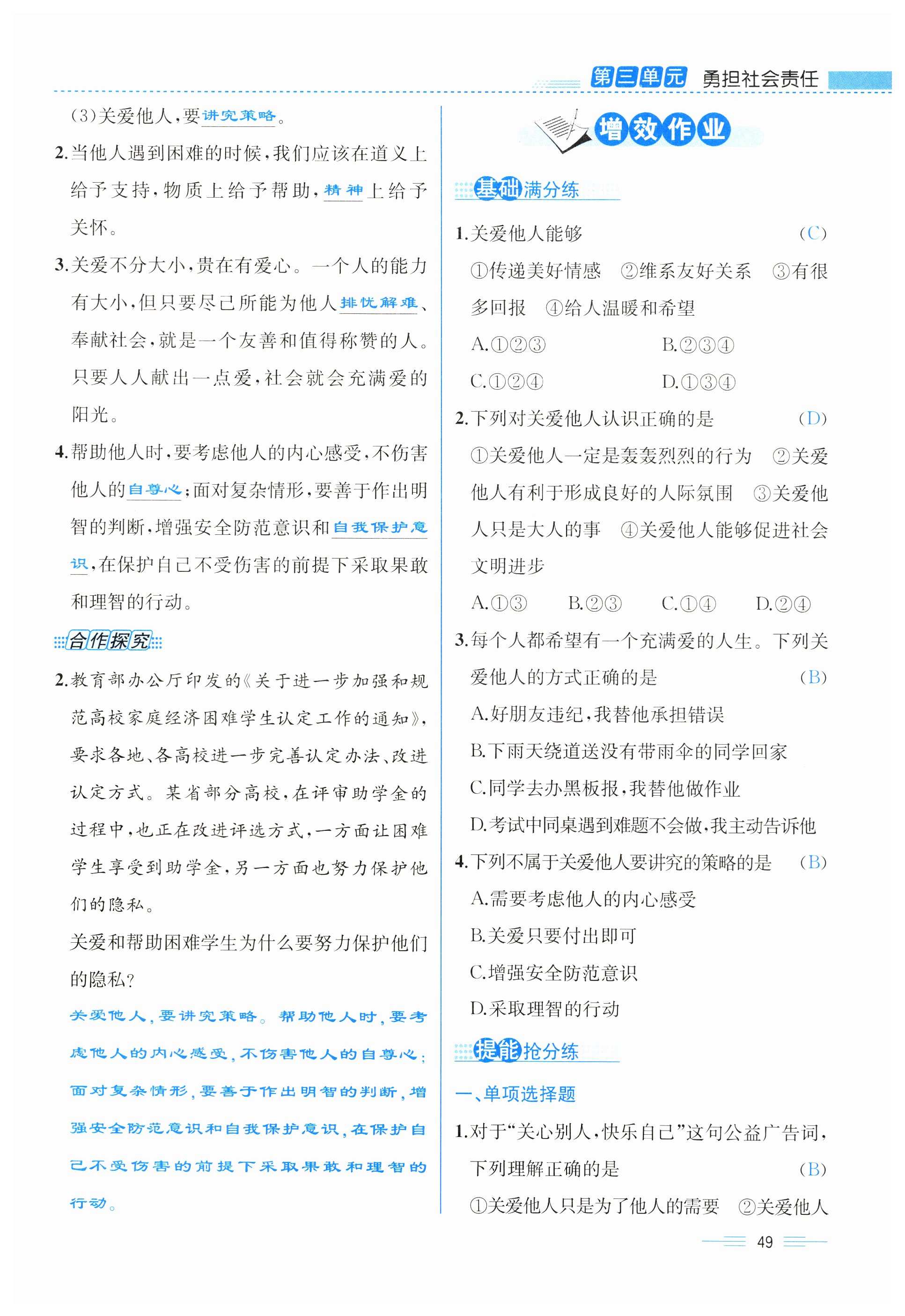 2024年人教金学典同步解析与测评八年级道德与法治上册人教版云南专版