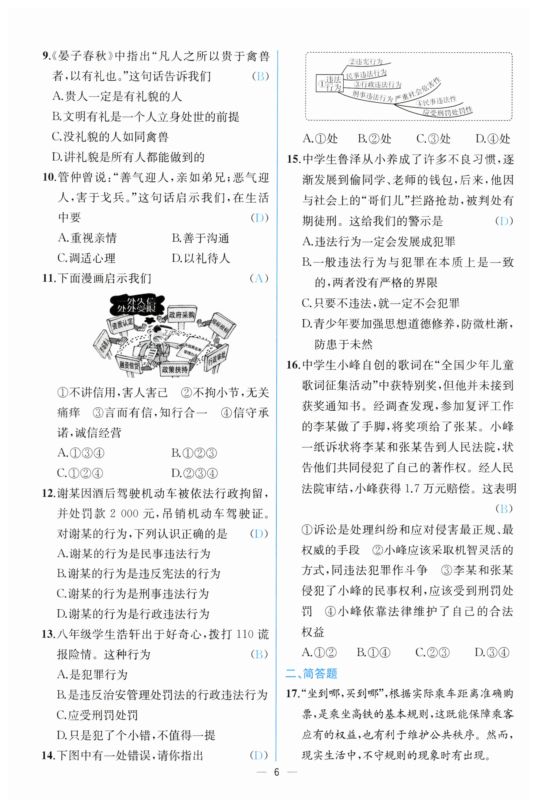 注:目前有些书本章节名称可能整理的还不是很完善,但都是按照顺序排列的,请同学们按照顺序仔细查找。练习册 2024年人教金学典同步解析与测评八年级道德与法治上册人教版云南专版 答案主要是用来给同学们做完题方便对答案用的,请勿直接抄袭。