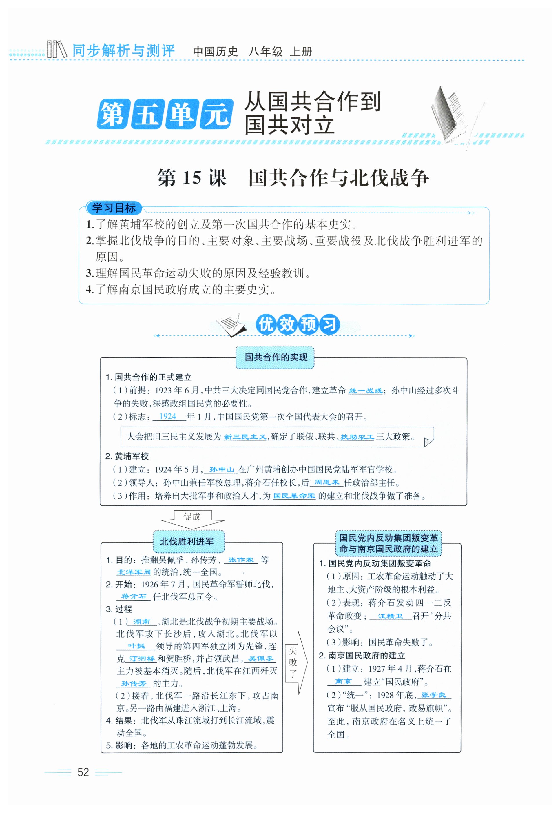 2024年人教金学典同步解析与测评八年级历史上册人教版云南专版