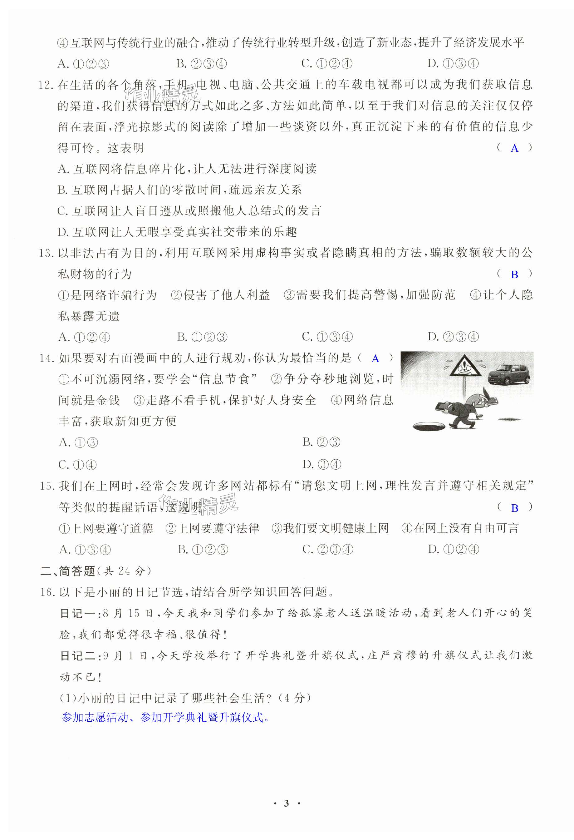 注:目前有些书本章节名称可能整理的还不是很完善,但都是按照顺序排列的,请同学们按照顺序仔细查找。练习册 2024年学生成长册八年级道德与法治上册人教版 答案主要是用来给同学们做完题方便对答案用的,请勿直接抄袭。