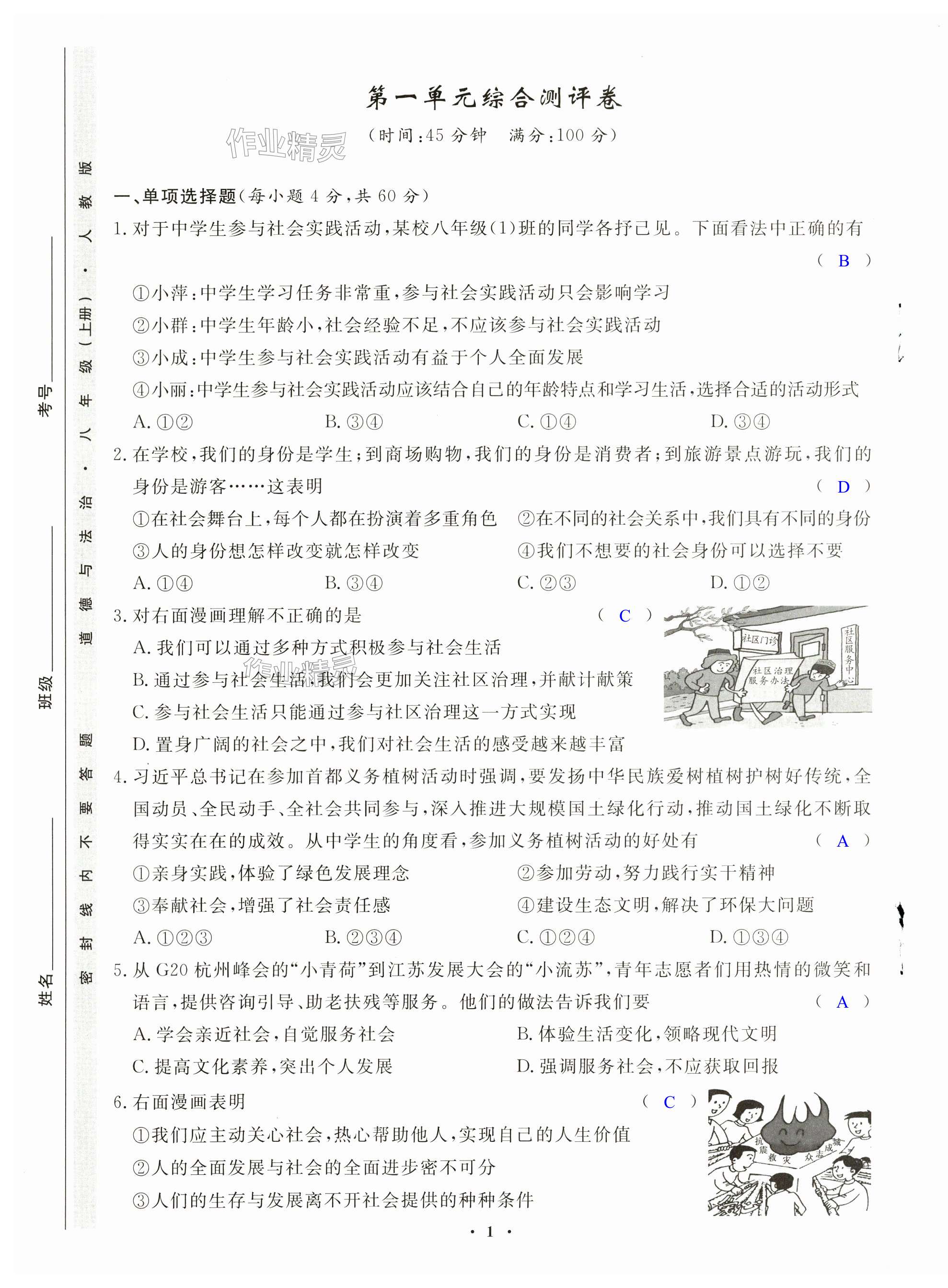 注:目前有些书本章节名称可能整理的还不是很完善,但都是按照顺序排列的,请同学们按照顺序仔细查找。练习册 2024年学生成长册八年级道德与法治上册人教版 答案主要是用来给同学们做完题方便对答案用的,请勿直接抄袭。
