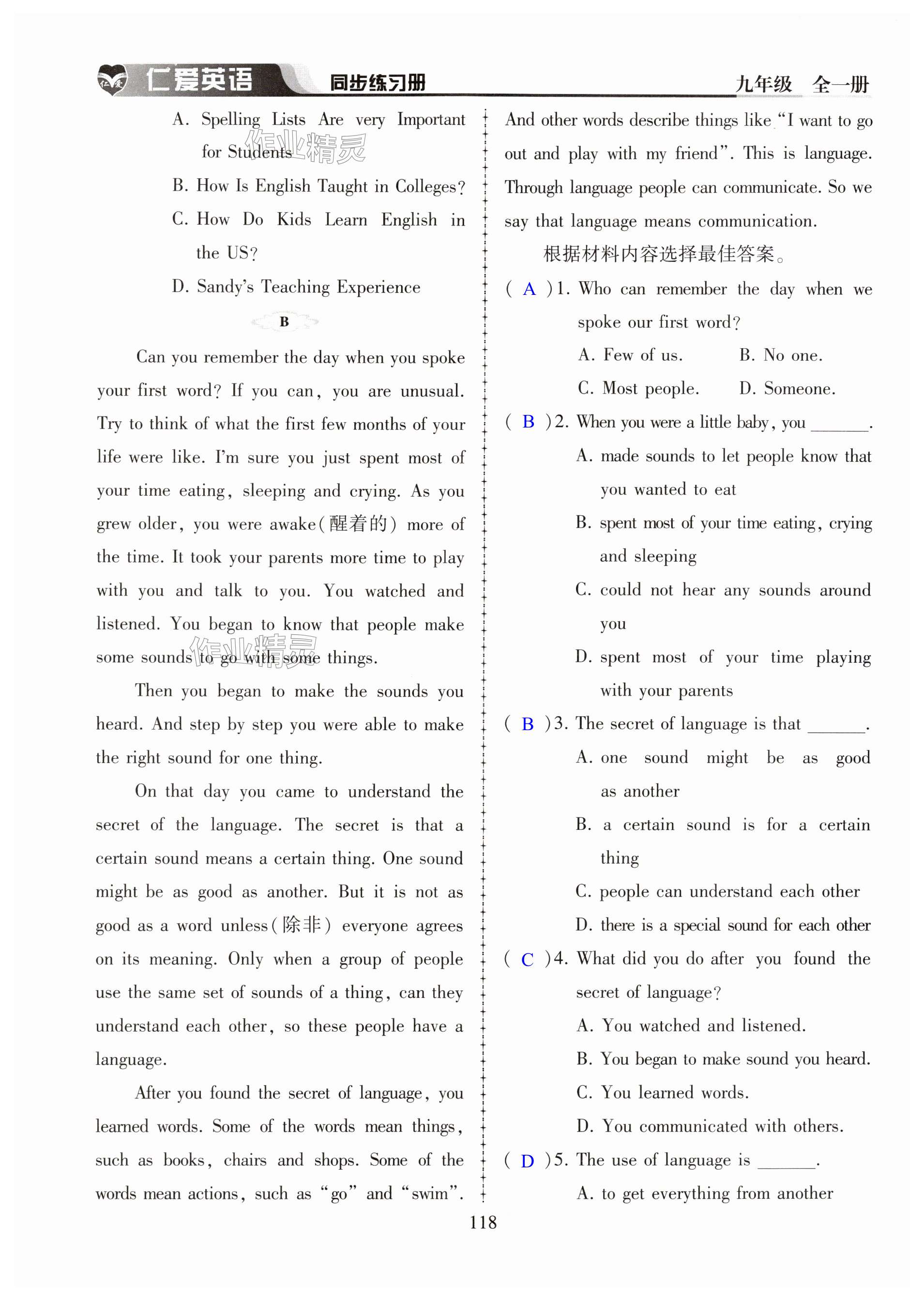 注:目前有些书本章节名称可能整理的还不是很完善,但都是按照顺序排列的,请同学们按照顺序仔细查找。练习册 2024年仁爱英语同步练习册九年级全一册仁爱版河南专版 答案主要是用来给同学们做完题方便对答案用的,请勿直接抄袭。
