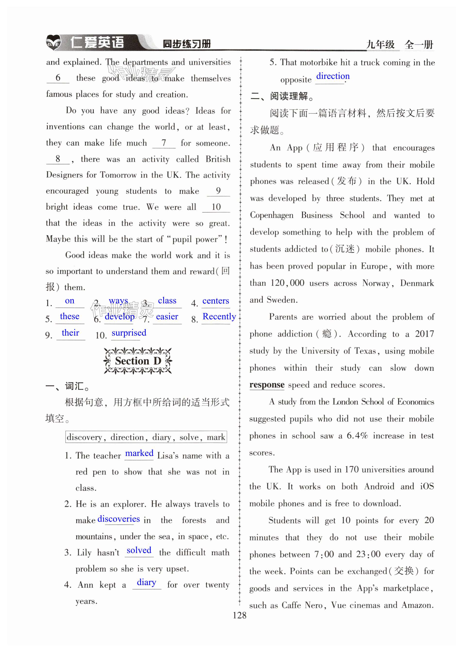 注:目前有些书本章节名称可能整理的还不是很完善,但都是按照顺序排列的,请同学们按照顺序仔细查找。练习册 2024年仁爱英语同步练习册九年级全一册仁爱版河南专版 答案主要是用来给同学们做完题方便对答案用的,请勿直接抄袭。