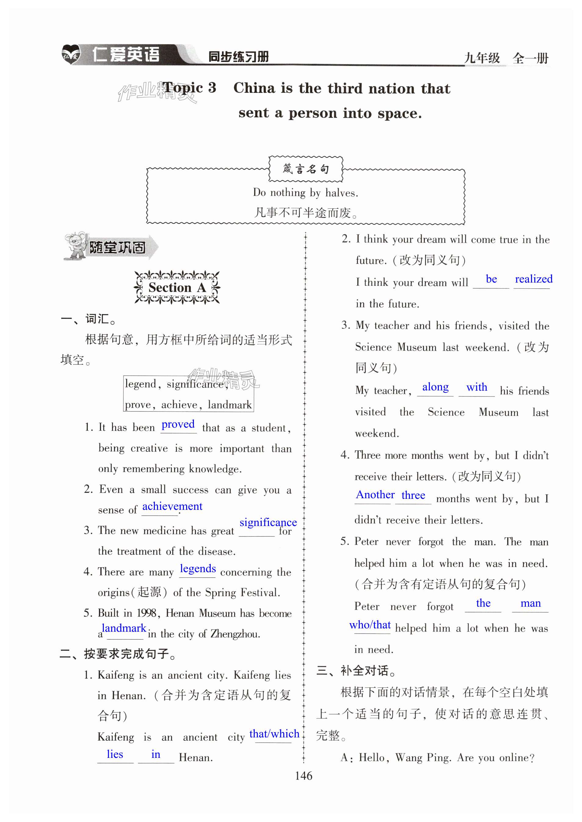 注:目前有些书本章节名称可能整理的还不是很完善,但都是按照顺序排列的,请同学们按照顺序仔细查找。练习册 2024年仁爱英语同步练习册九年级全一册仁爱版河南专版 答案主要是用来给同学们做完题方便对答案用的,请勿直接抄袭。