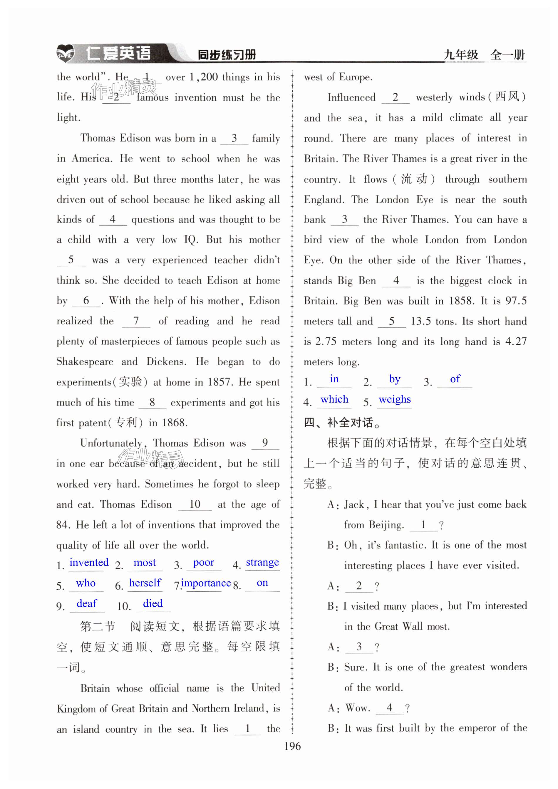 注:目前有些书本章节名称可能整理的还不是很完善,但都是按照顺序排列的,请同学们按照顺序仔细查找。练习册 2024年仁爱英语同步练习册九年级全一册仁爱版河南专版 答案主要是用来给同学们做完题方便对答案用的,请勿直接抄袭。