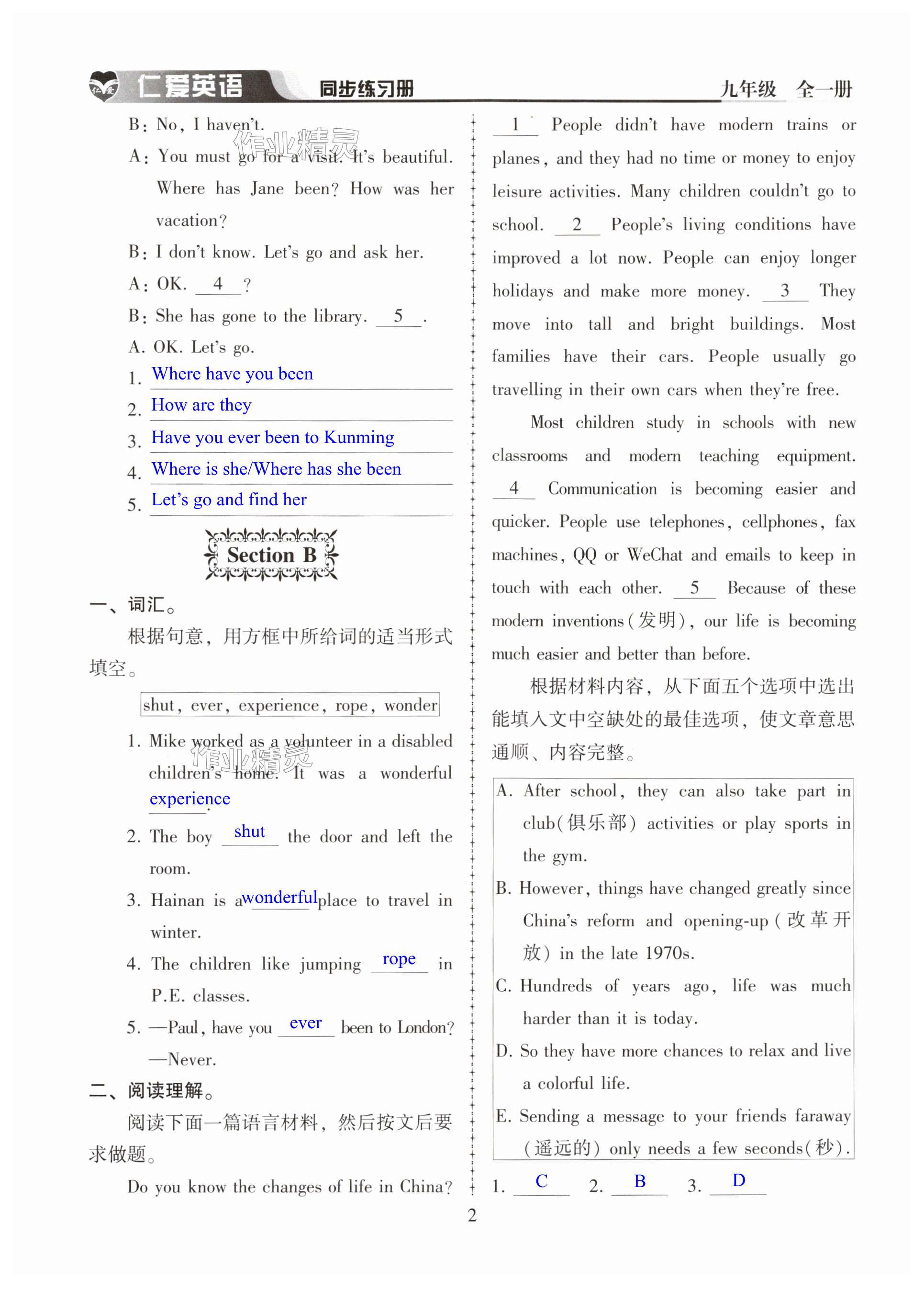 注:目前有些书本章节名称可能整理的还不是很完善,但都是按照顺序排列的,请同学们按照顺序仔细查找。练习册 2024年仁爱英语同步练习册九年级全一册仁爱版河南专版 答案主要是用来给同学们做完题方便对答案用的,请勿直接抄袭。