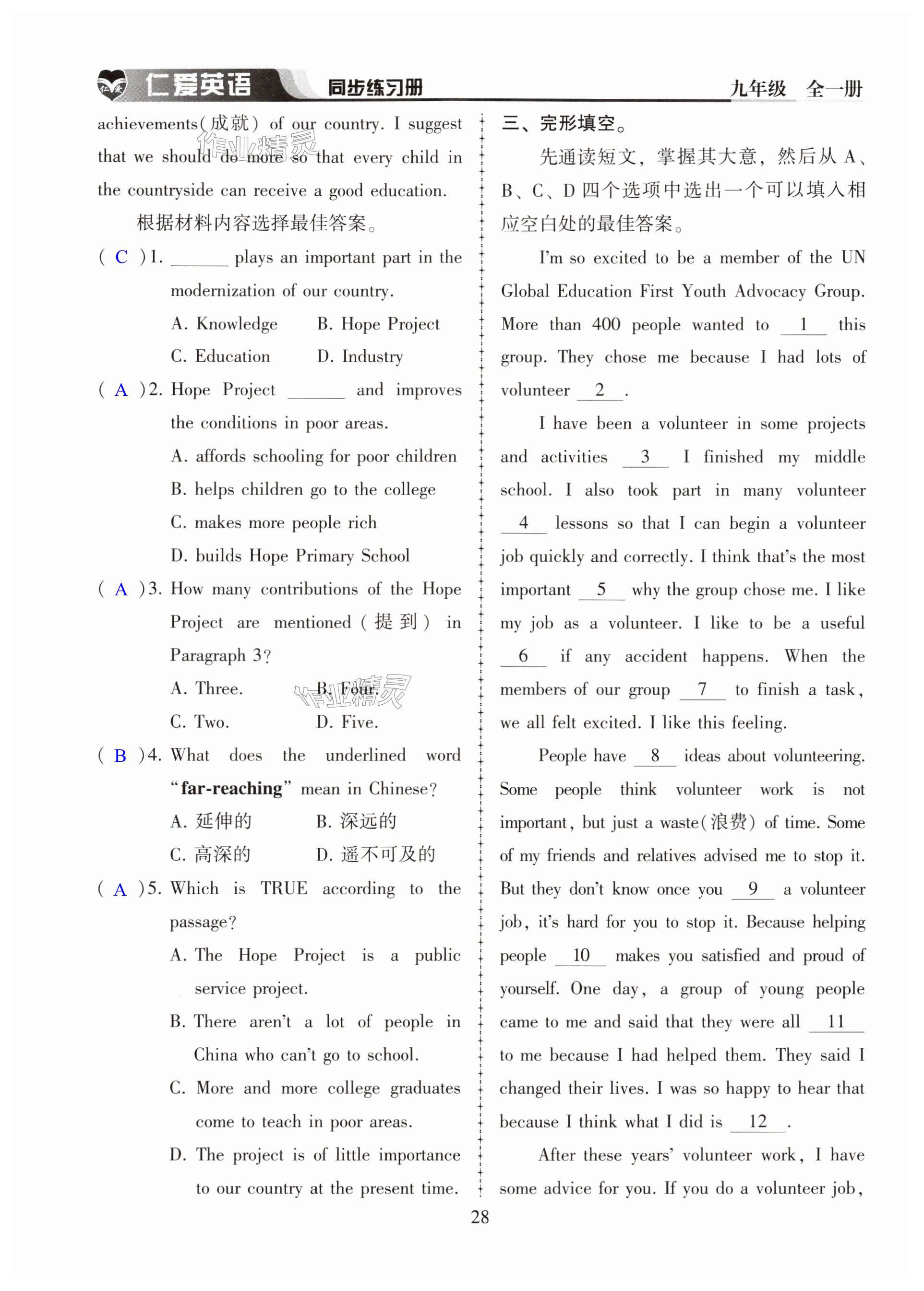 《2024年仁爱英语同步练习册九年级全一册仁爱版河南专版》