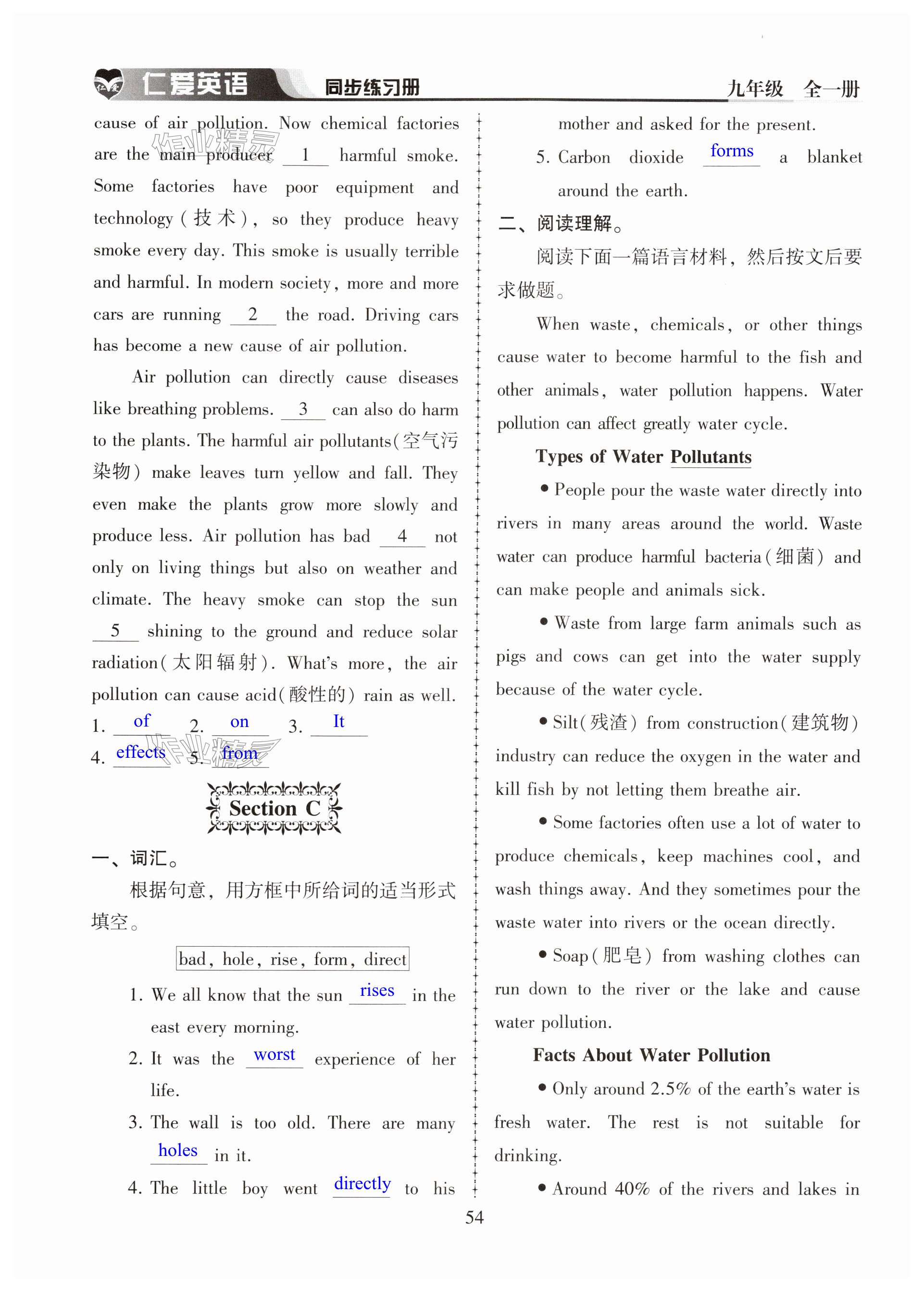 2024年仁爱英语同步练习册九年级全一册仁爱版河南专版
