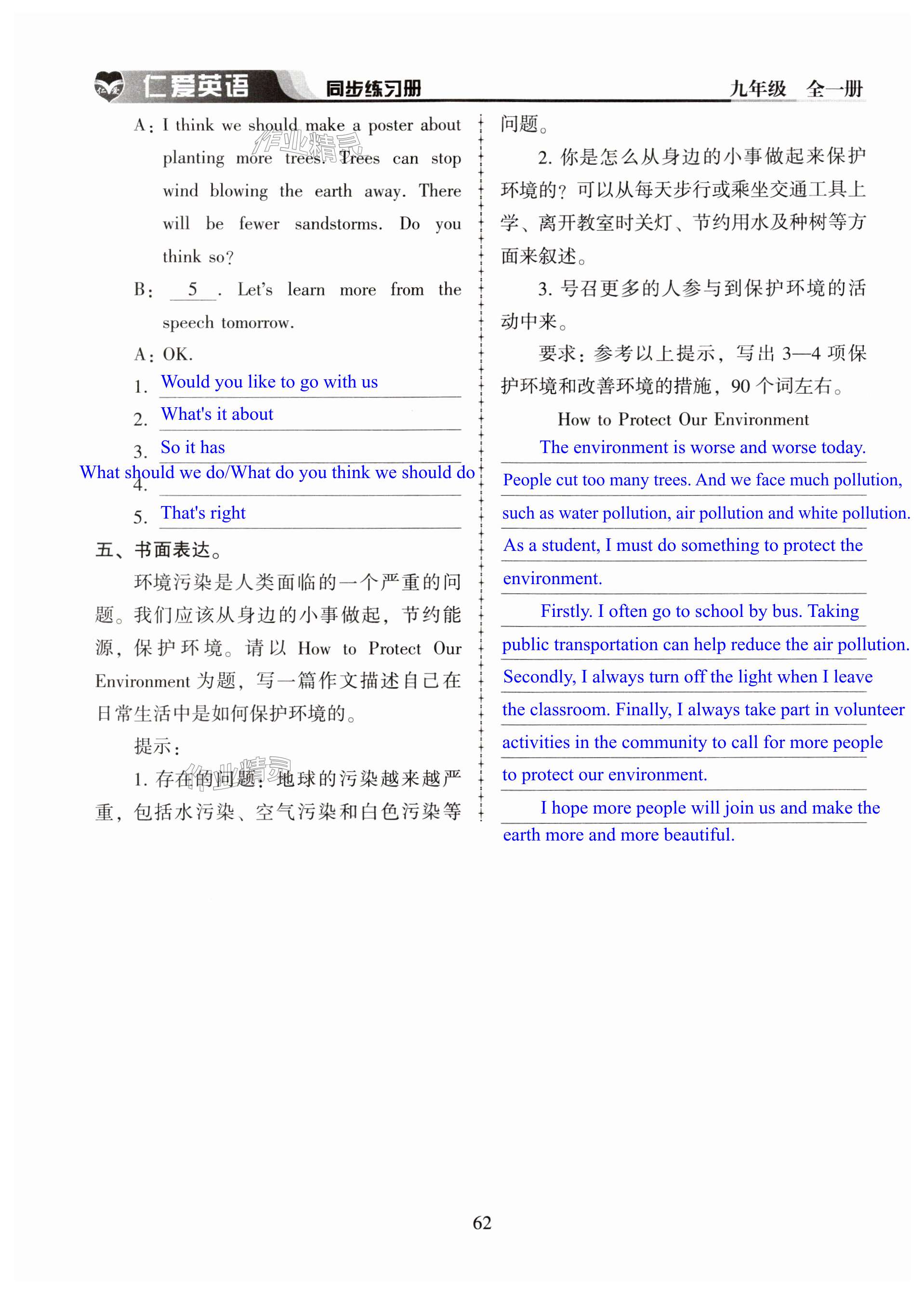注:目前有些书本章节名称可能整理的还不是很完善,但都是按照顺序排列的,请同学们按照顺序仔细查找。练习册 2024年仁爱英语同步练习册九年级全一册仁爱版河南专版 答案主要是用来给同学们做完题方便对答案用的,请勿直接抄袭。