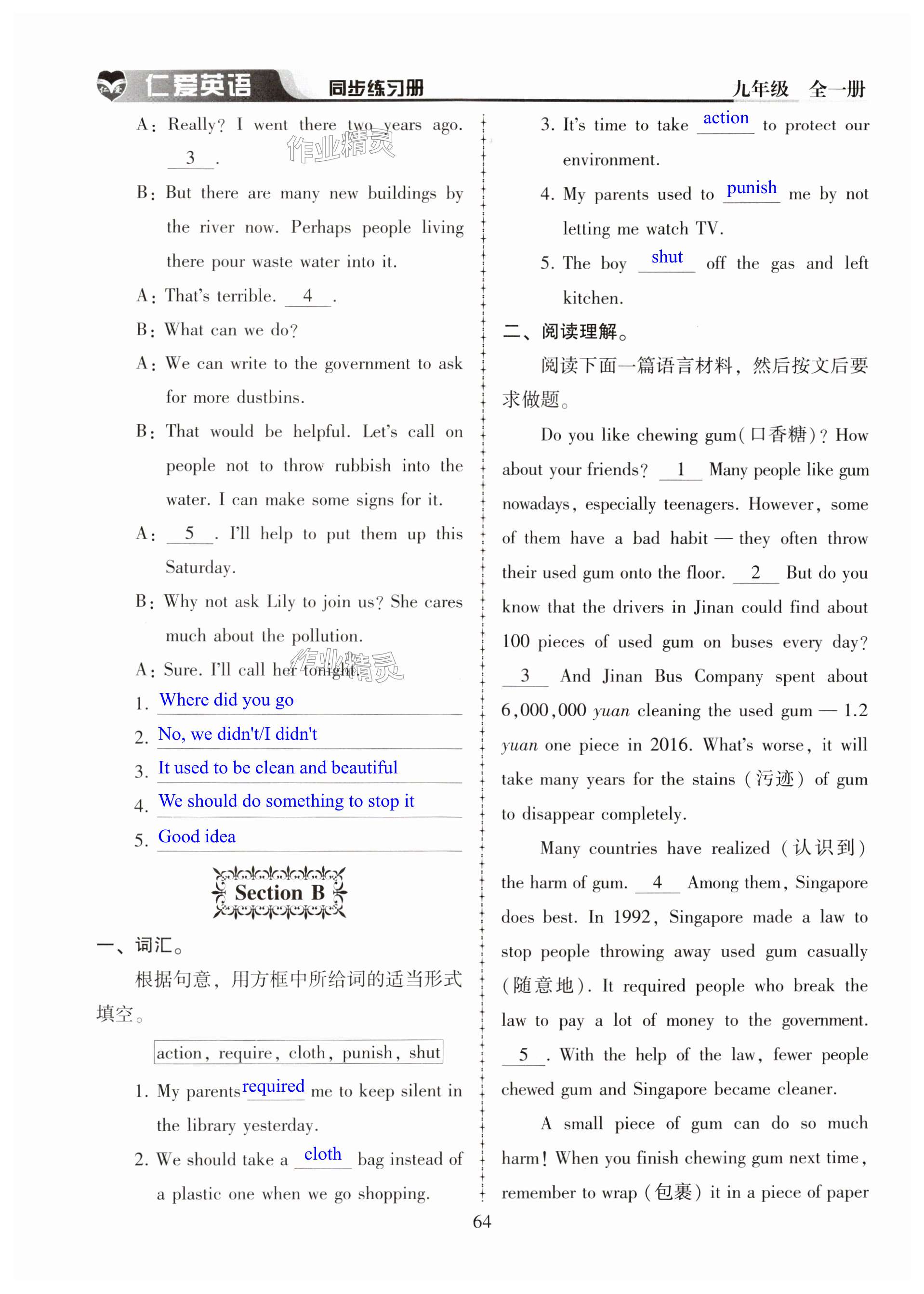注:目前有些书本章节名称可能整理的还不是很完善,但都是按照顺序排列的,请同学们按照顺序仔细查找。练习册 2024年仁爱英语同步练习册九年级全一册仁爱版河南专版 答案主要是用来给同学们做完题方便对答案用的,请勿直接抄袭。