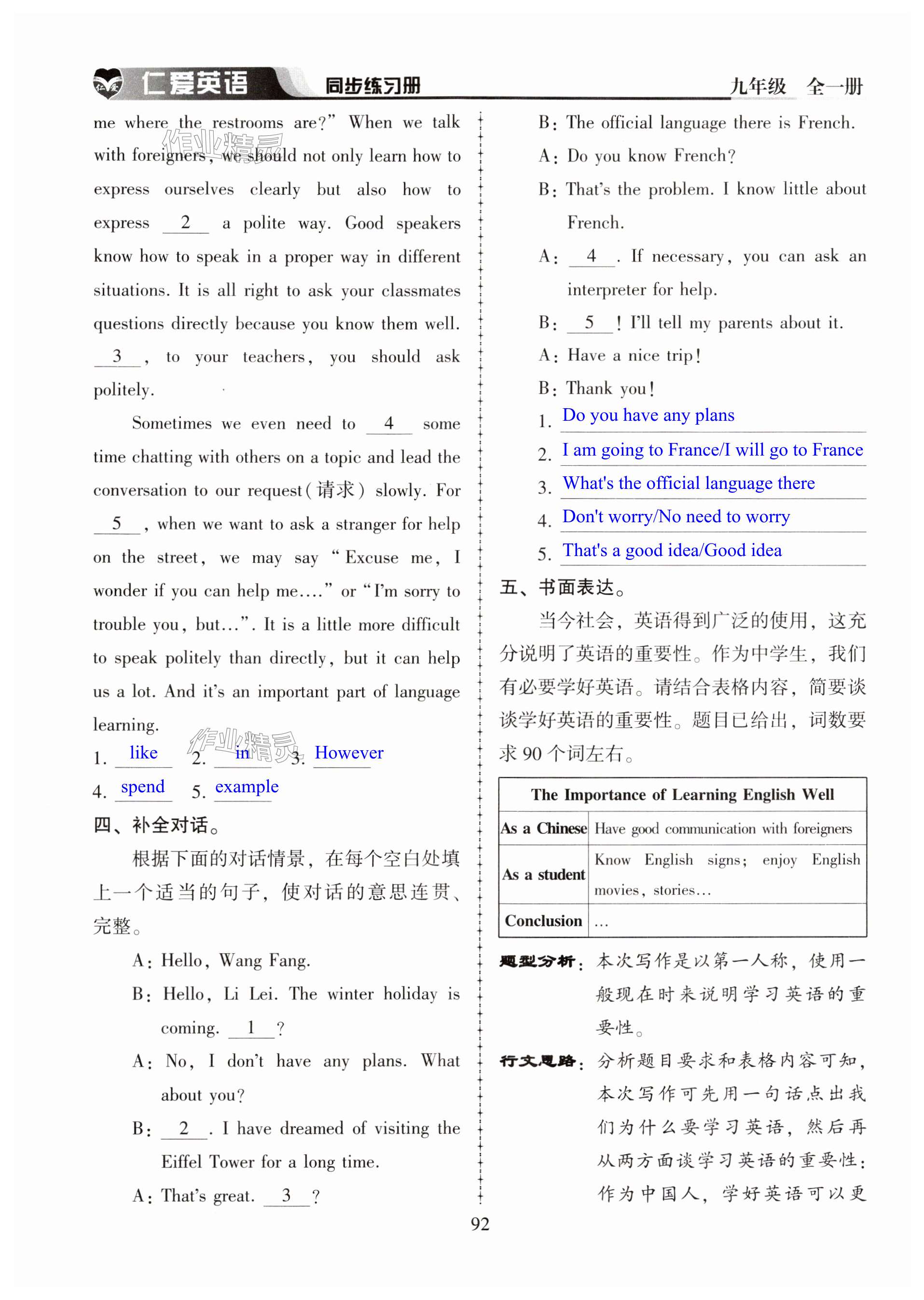 注:目前有些书本章节名称可能整理的还不是很完善,但都是按照顺序排列的,请同学们按照顺序仔细查找。练习册 2024年仁爱英语同步练习册九年级全一册仁爱版河南专版 答案主要是用来给同学们做完题方便对答案用的,请勿直接抄袭。