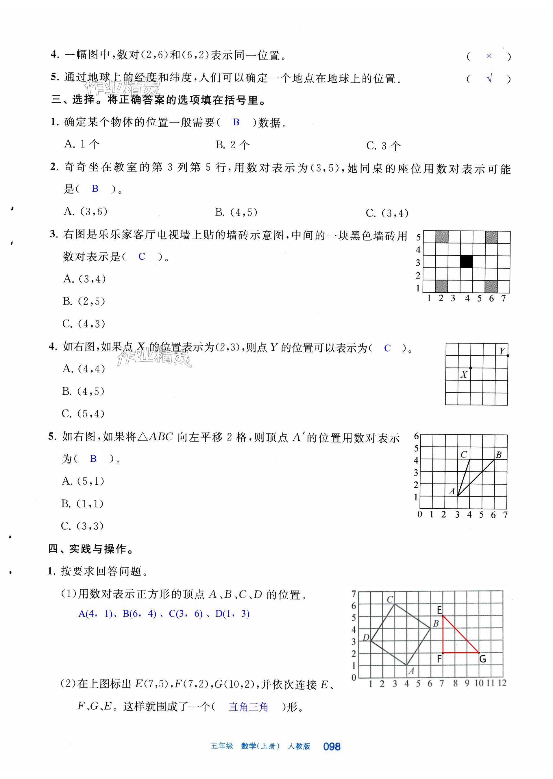注:目前有些书本章节名称可能整理的还不是很完善,但都是按照顺序排列的,请同学们按照顺序仔细查找。练习册 2024年学习之友五年级数学上册人教版 答案主要是用来给同学们做完题方便对答案用的,请勿直接抄袭。