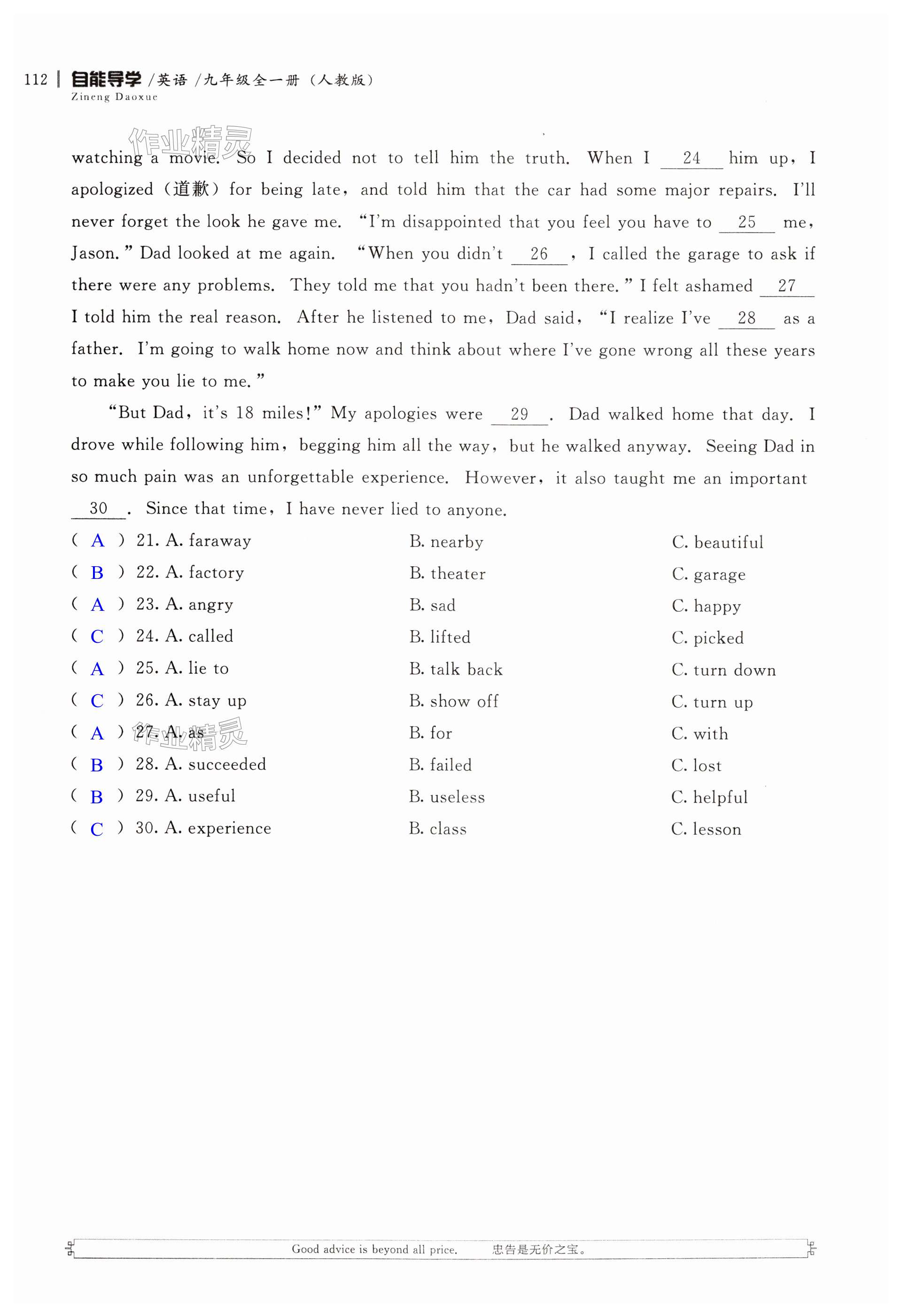 注:目前有些书本章节名称可能整理的还不是很完善,但都是按照顺序排列的,请同学们按照顺序仔细查找。练习册 2024年自能导学九年级英语全一册人教版 答案主要是用来给同学们做完题方便对答案用的,请勿直接抄袭。