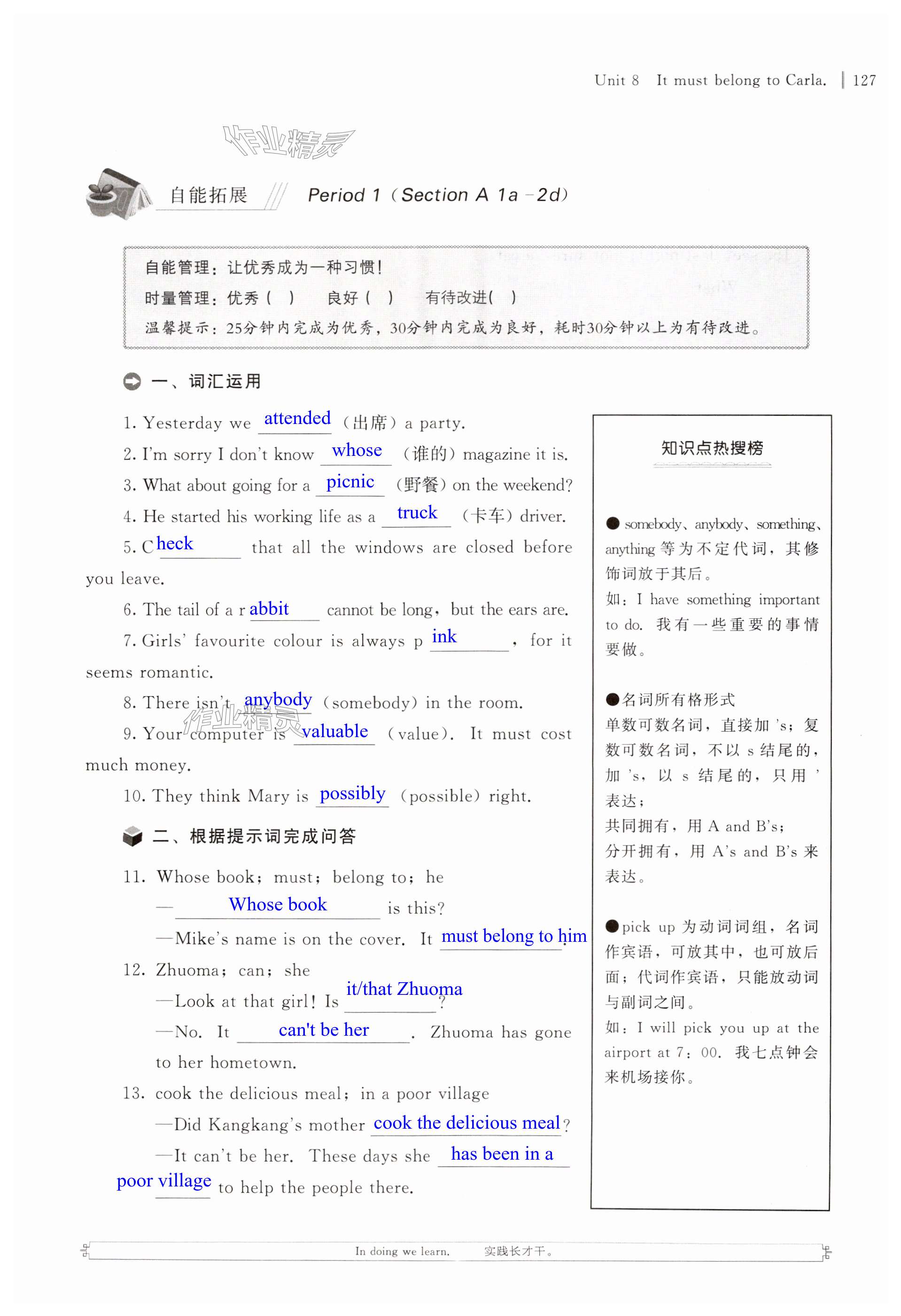 注:目前有些书本章节名称可能整理的还不是很完善,但都是按照顺序排列的,请同学们按照顺序仔细查找。练习册 2024年自能导学九年级英语全一册人教版 答案主要是用来给同学们做完题方便对答案用的,请勿直接抄袭。