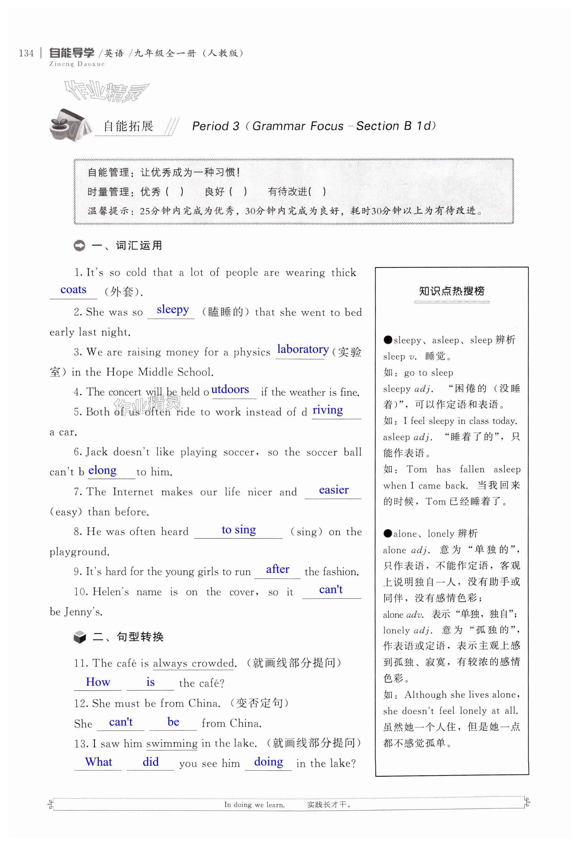 注:目前有些书本章节名称可能整理的还不是很完善,但都是按照顺序排列的,请同学们按照顺序仔细查找。练习册 2024年自能导学九年级英语全一册人教版 答案主要是用来给同学们做完题方便对答案用的,请勿直接抄袭。