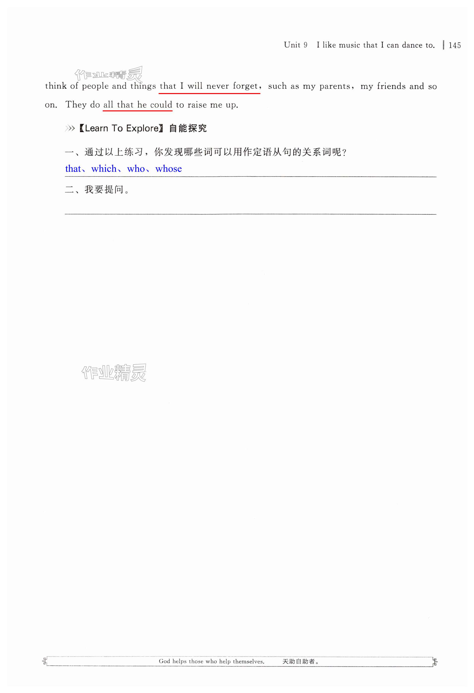 注:目前有些书本章节名称可能整理的还不是很完善,但都是按照顺序排列的,请同学们按照顺序仔细查找。练习册 2024年自能导学九年级英语全一册人教版 答案主要是用来给同学们做完题方便对答案用的,请勿直接抄袭。