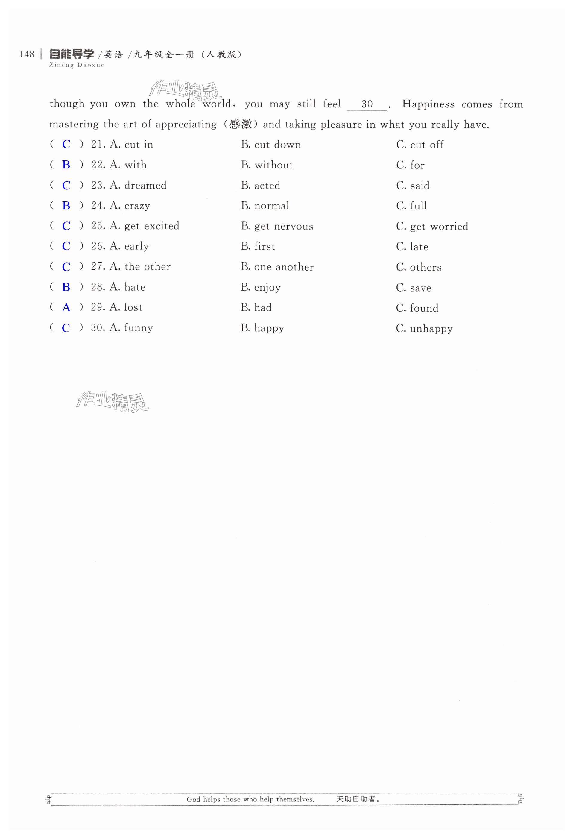 注:目前有些书本章节名称可能整理的还不是很完善,但都是按照顺序排列的,请同学们按照顺序仔细查找。练习册 2024年自能导学九年级英语全一册人教版 答案主要是用来给同学们做完题方便对答案用的,请勿直接抄袭。